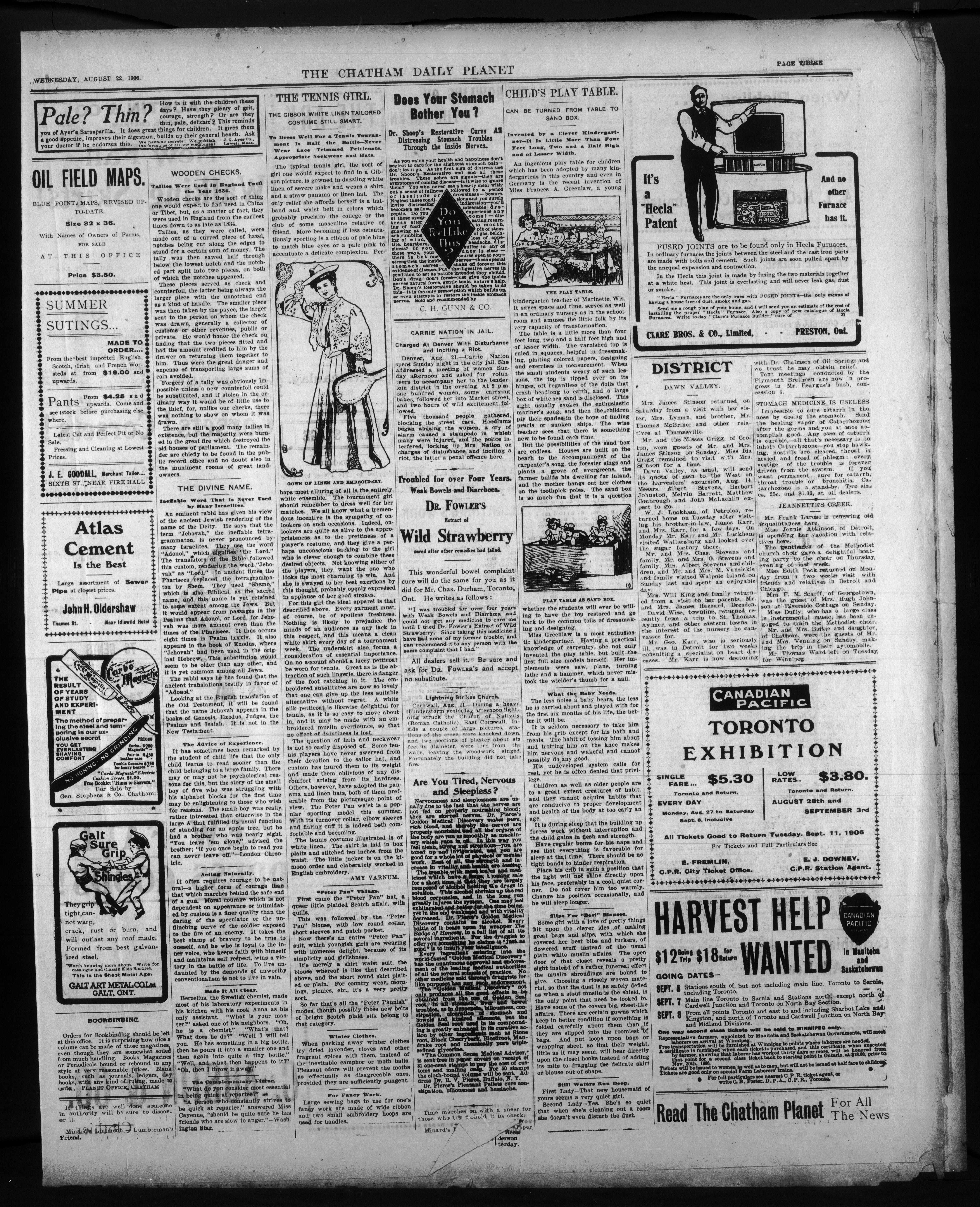 - The Chatham Daily Planet : Vol. XV, No. 201 (August 22, 1906)