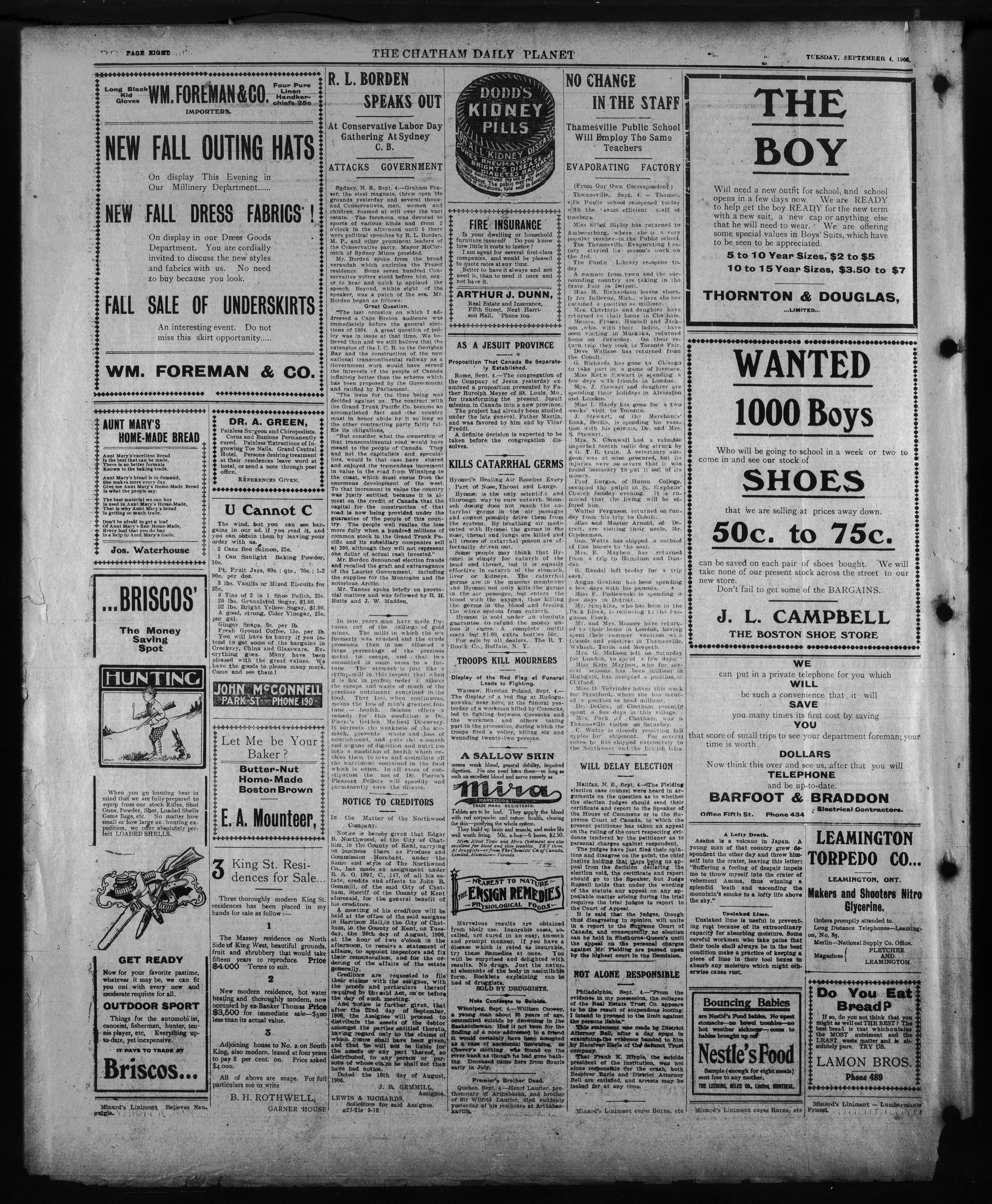 - The Chatham Daily Planet : Vol. XV, No. 213 (September 4, 1906)
