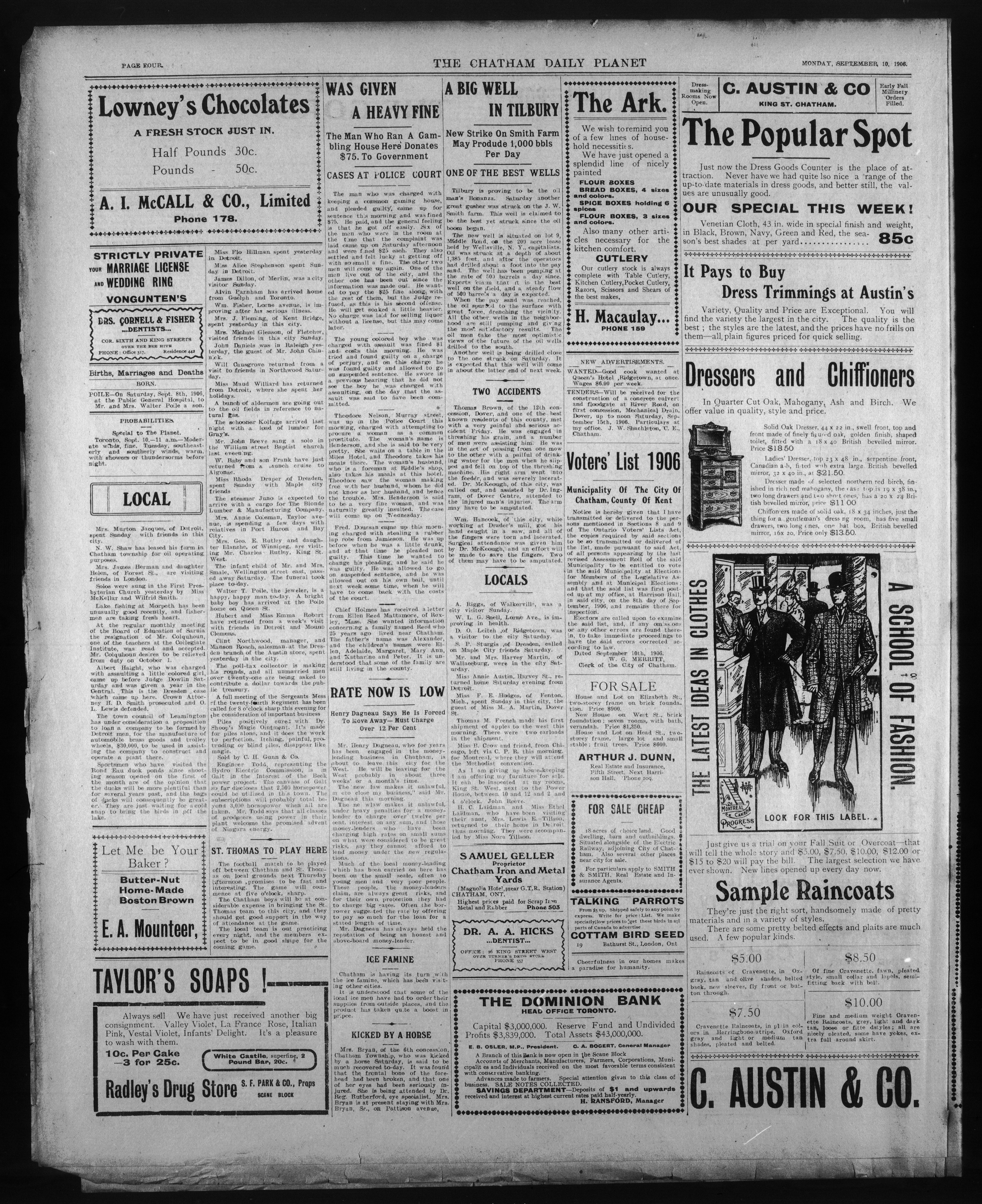- The Chatham Daily Planet : Vol. XV, No. 218 (September 10, 1906)