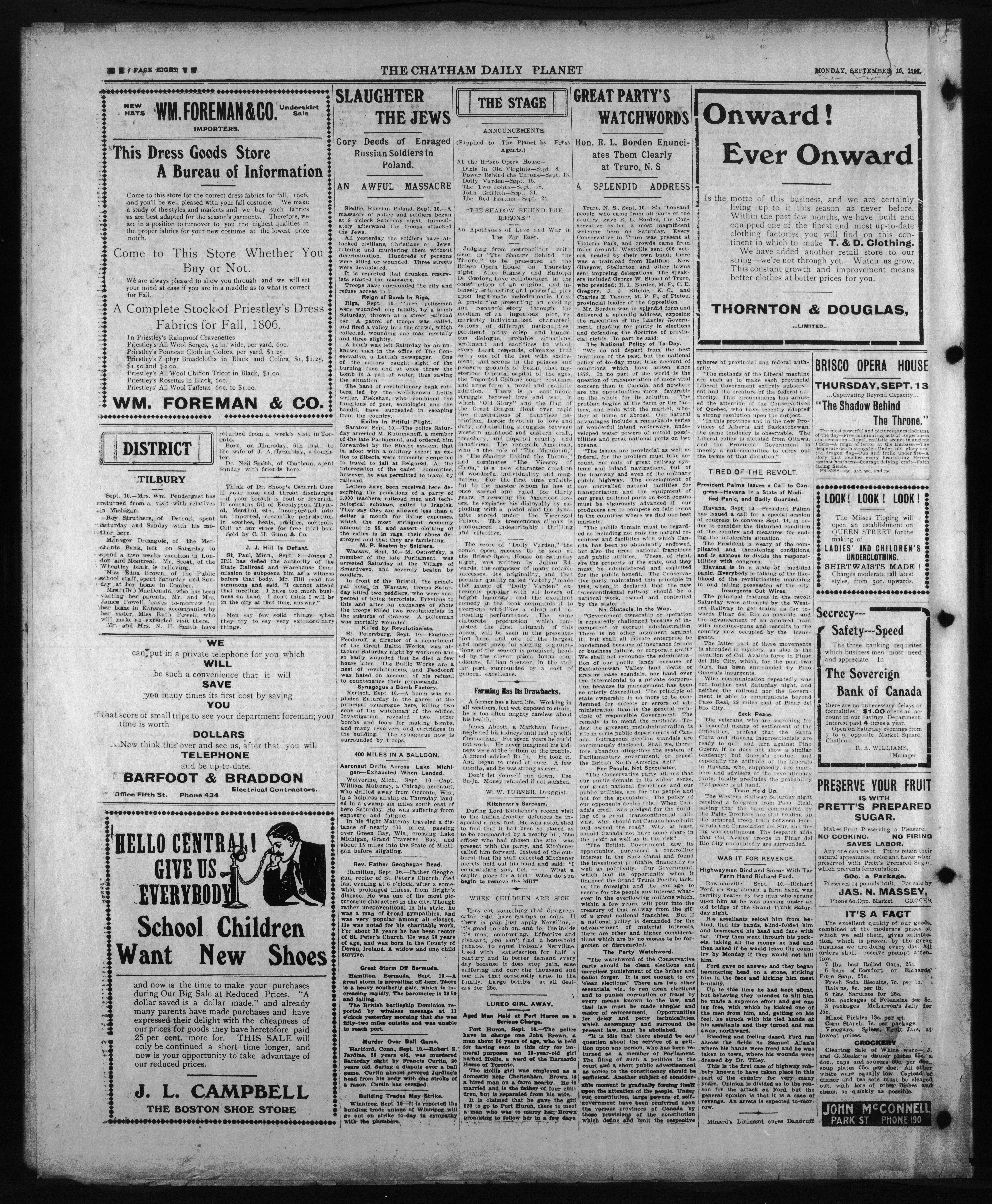 - The Chatham Daily Planet : Vol. XV, No. 218 (September 10, 1906)