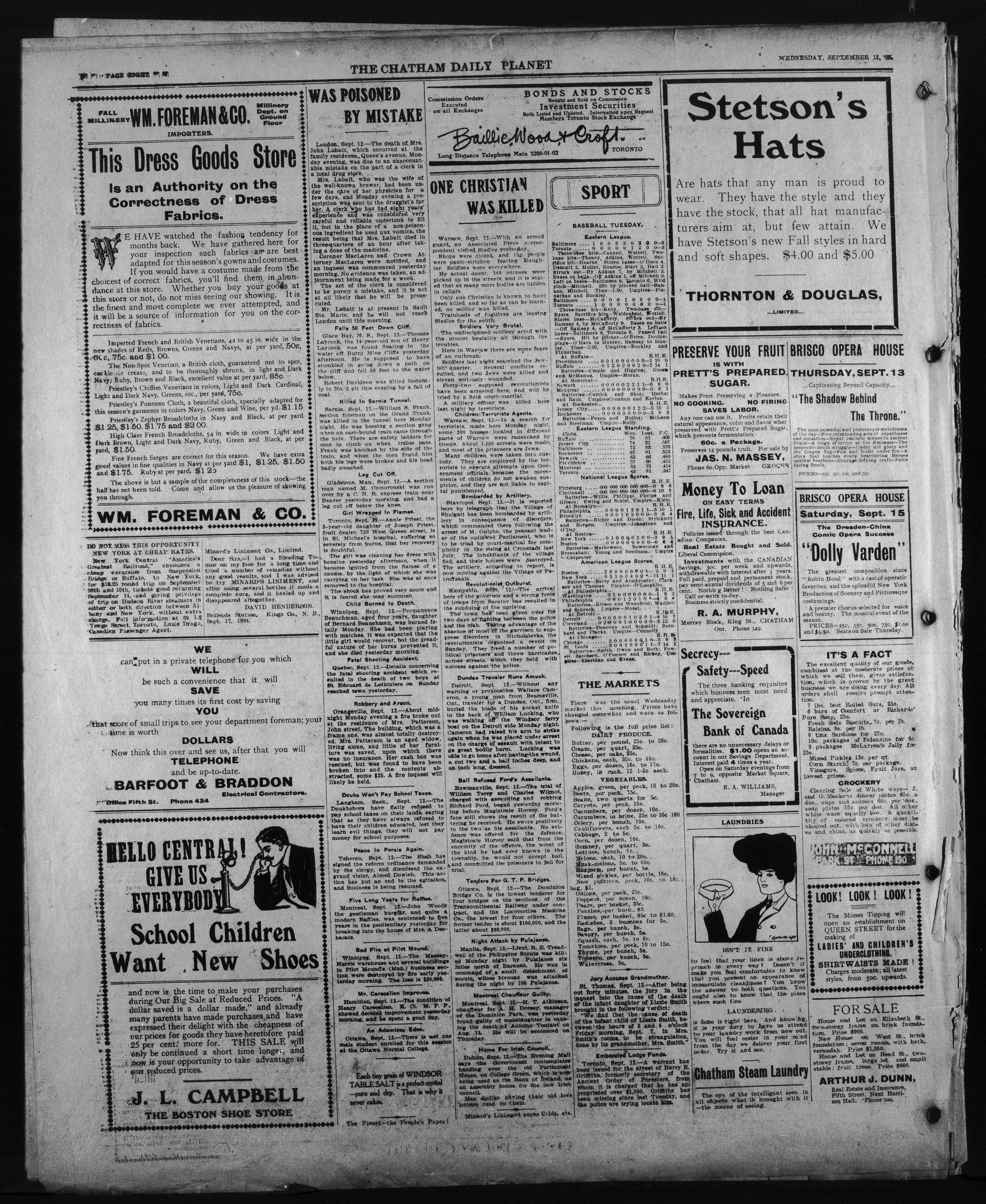 - The Chatham Daily Planet : Vol. XV, No. 220 (September 12, 1906)