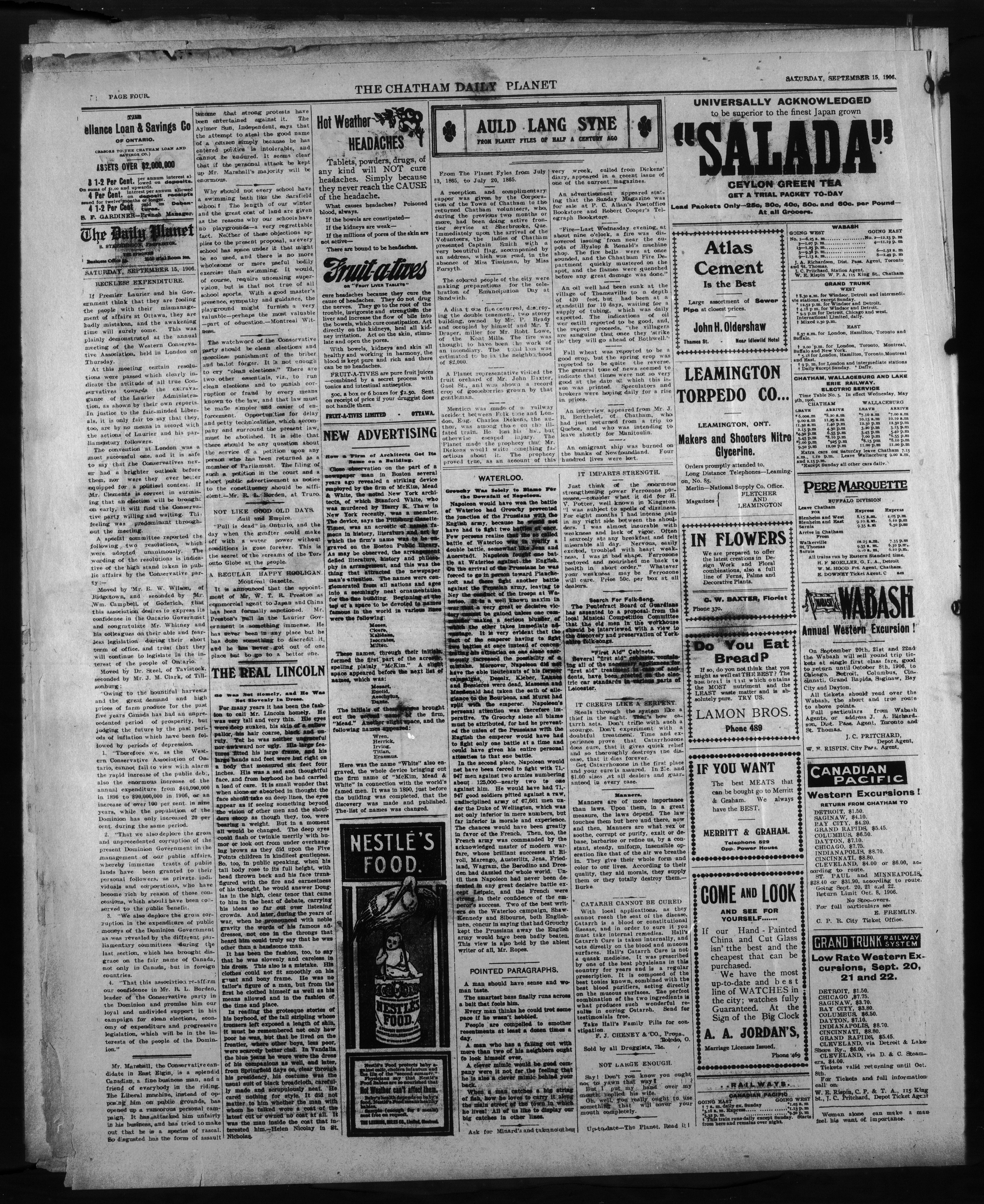 - The Chatham Daily Planet : Vol. XV, No. 223 (September 15, 1906)