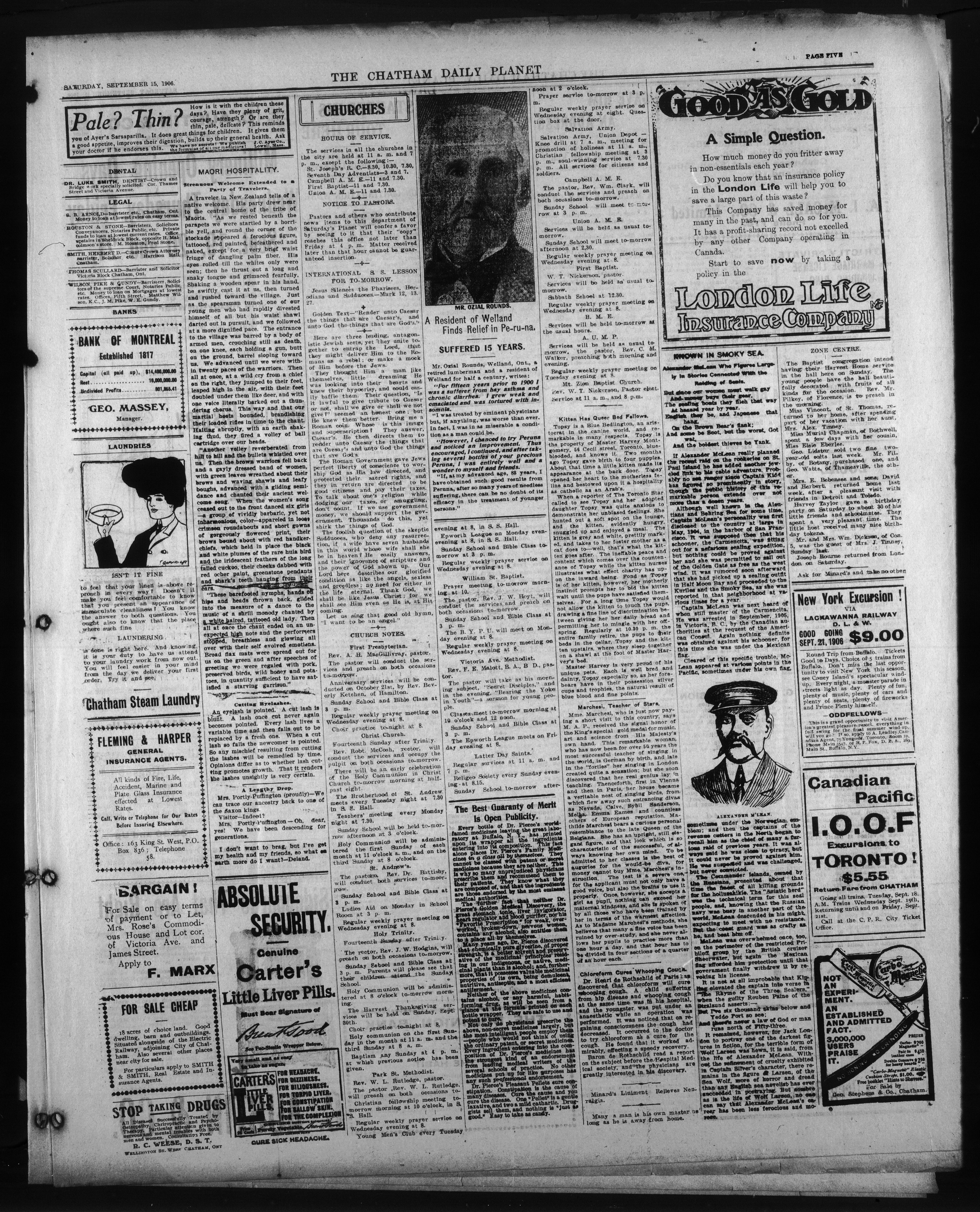 - The Chatham Daily Planet : Vol. XV, No. 223 (September 15, 1906)