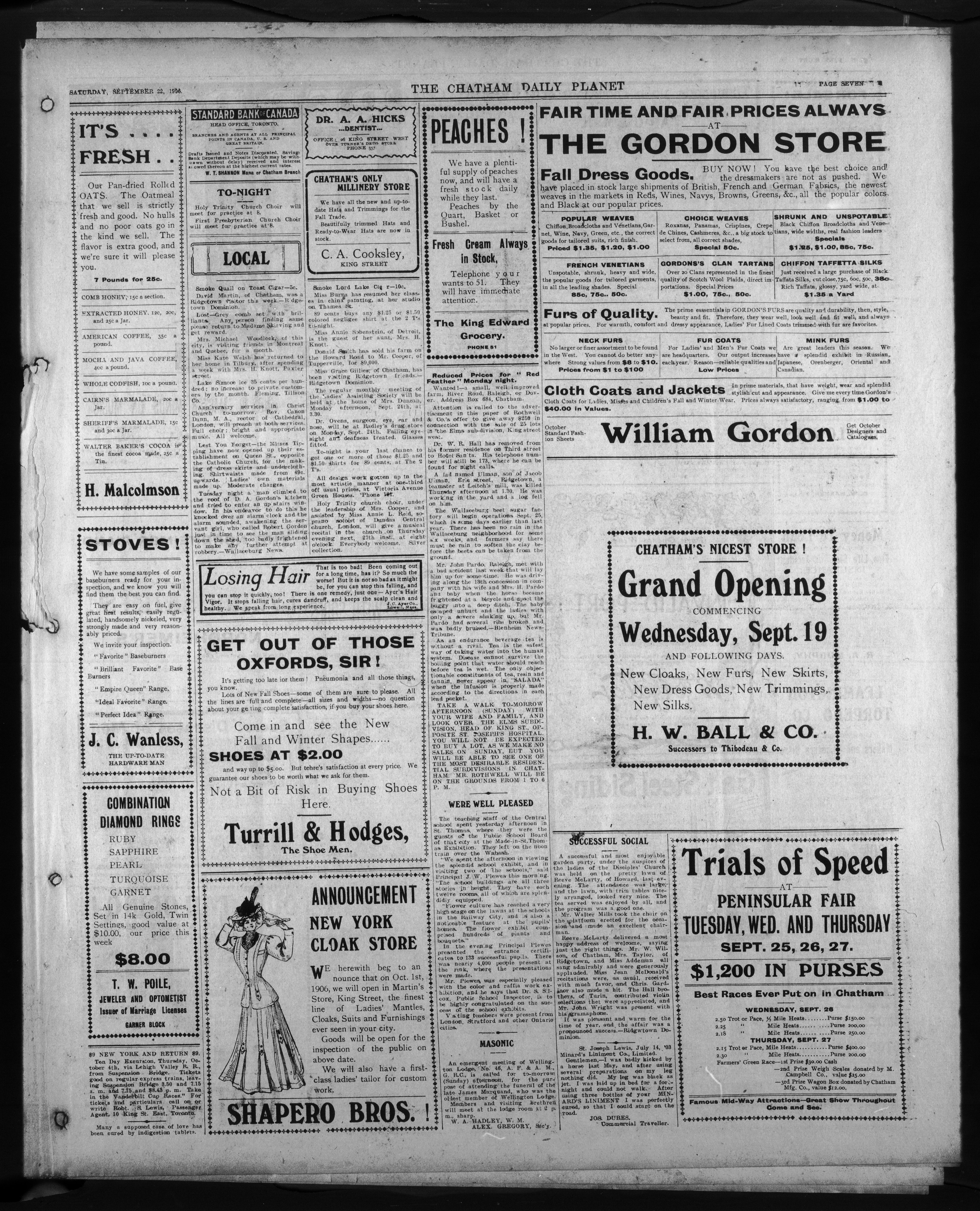 - The Chatham Daily Planet : Vol. XV, No. 229 (September 22, 1906)