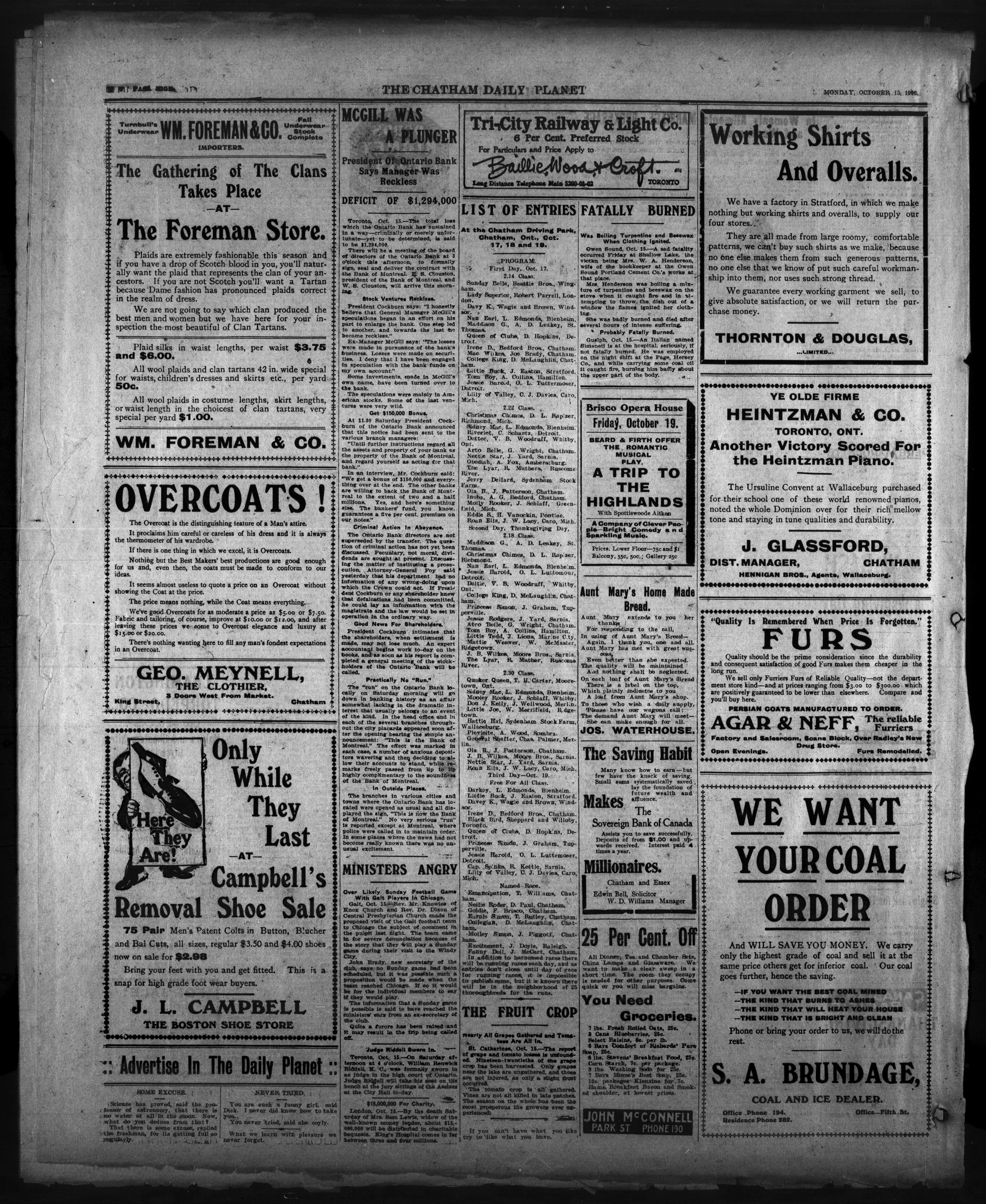 - The Chatham Daily Planet : Vol. XV, No. 248 (October 15, 1906)