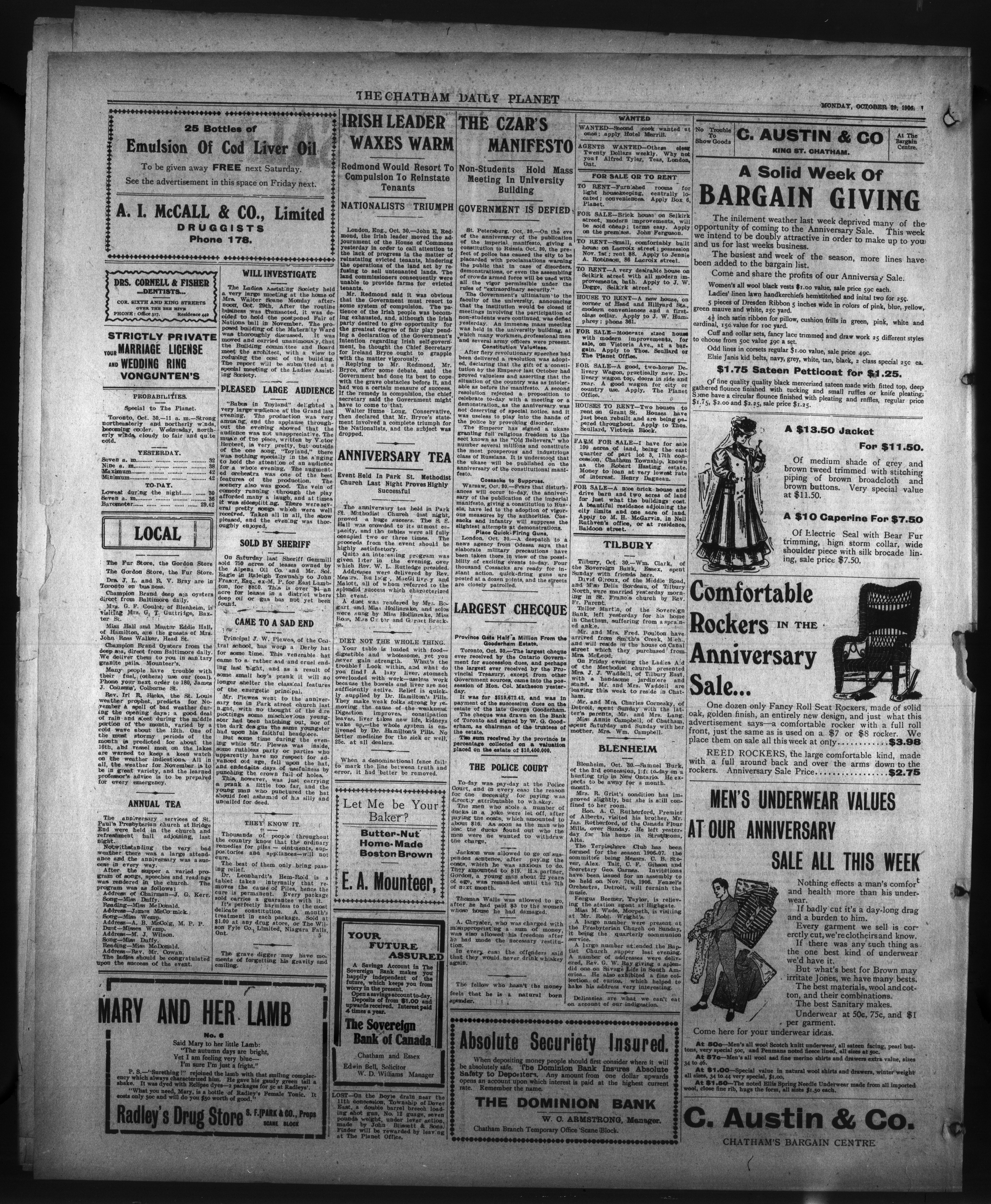 - The Chatham Daily Planet : Vol. XV, No. 261 (October 30, 1906)