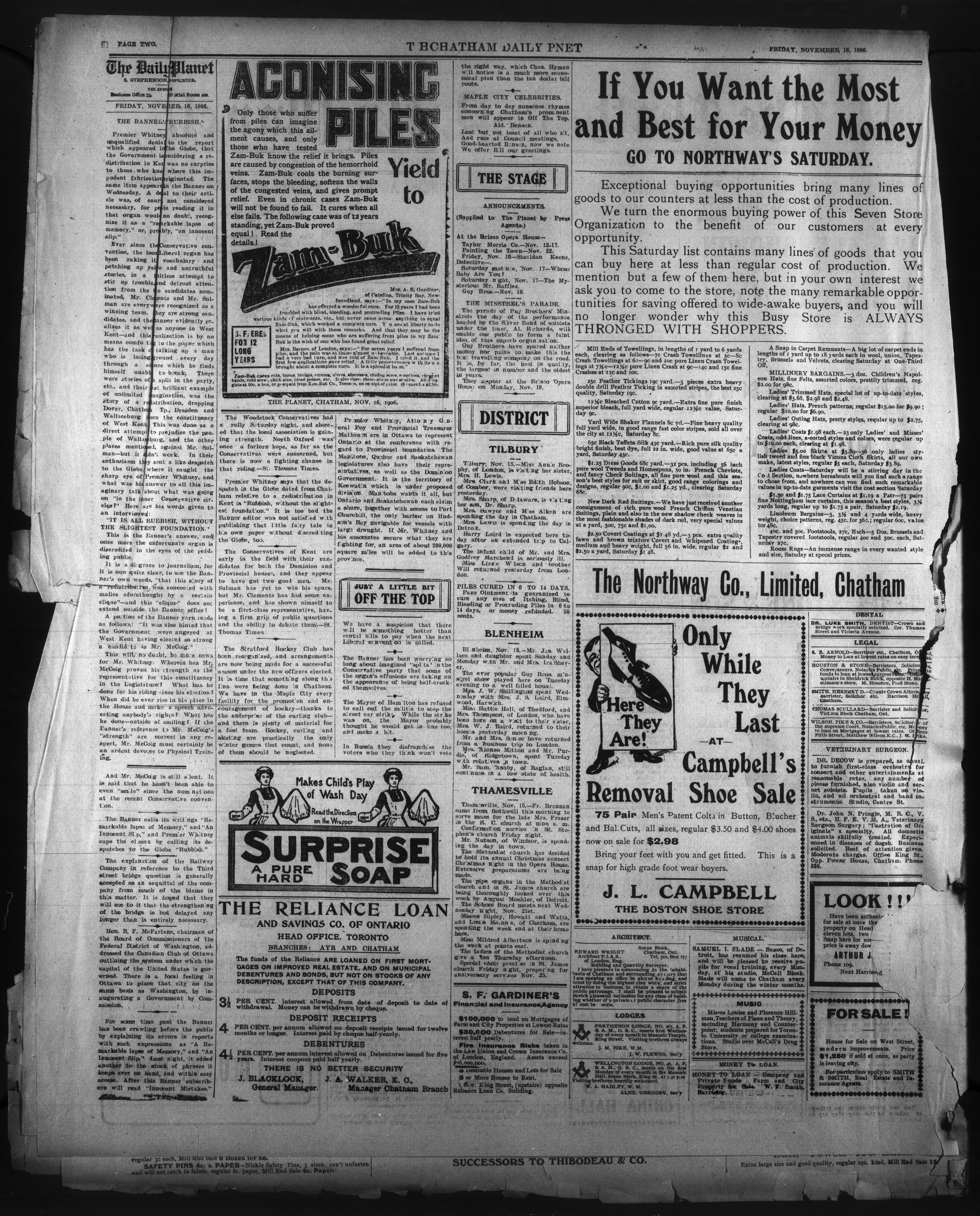 - The Chatham Daily Planet : Vol. XV, No. 276 (November 16, 1906)
