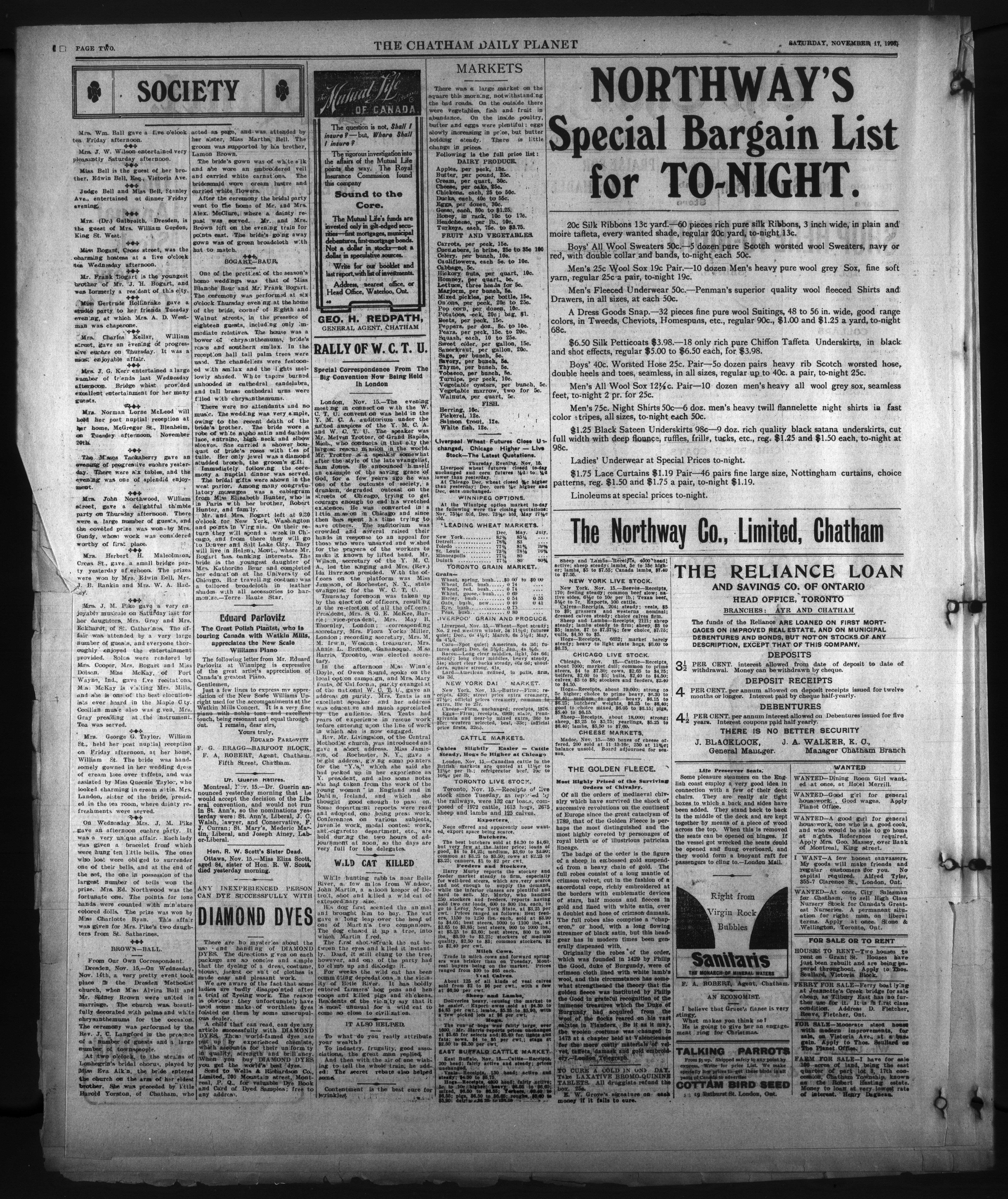 - The Chatham Daily Planet : Vol. XV, No. 277 (November 17, 1906)
