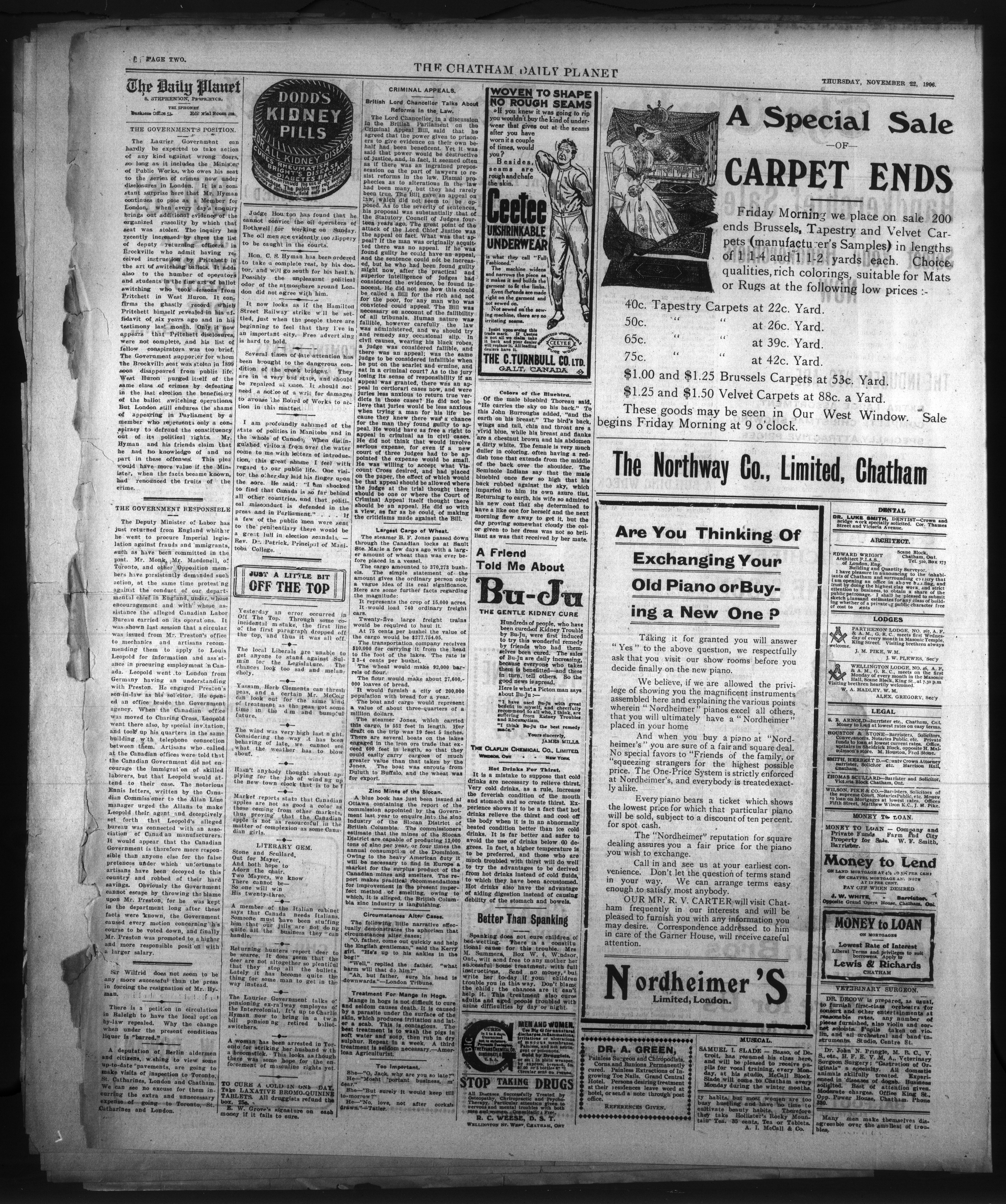 - The Chatham Daily Planet : Vol. XV, No. 281 (November 22, 1906)