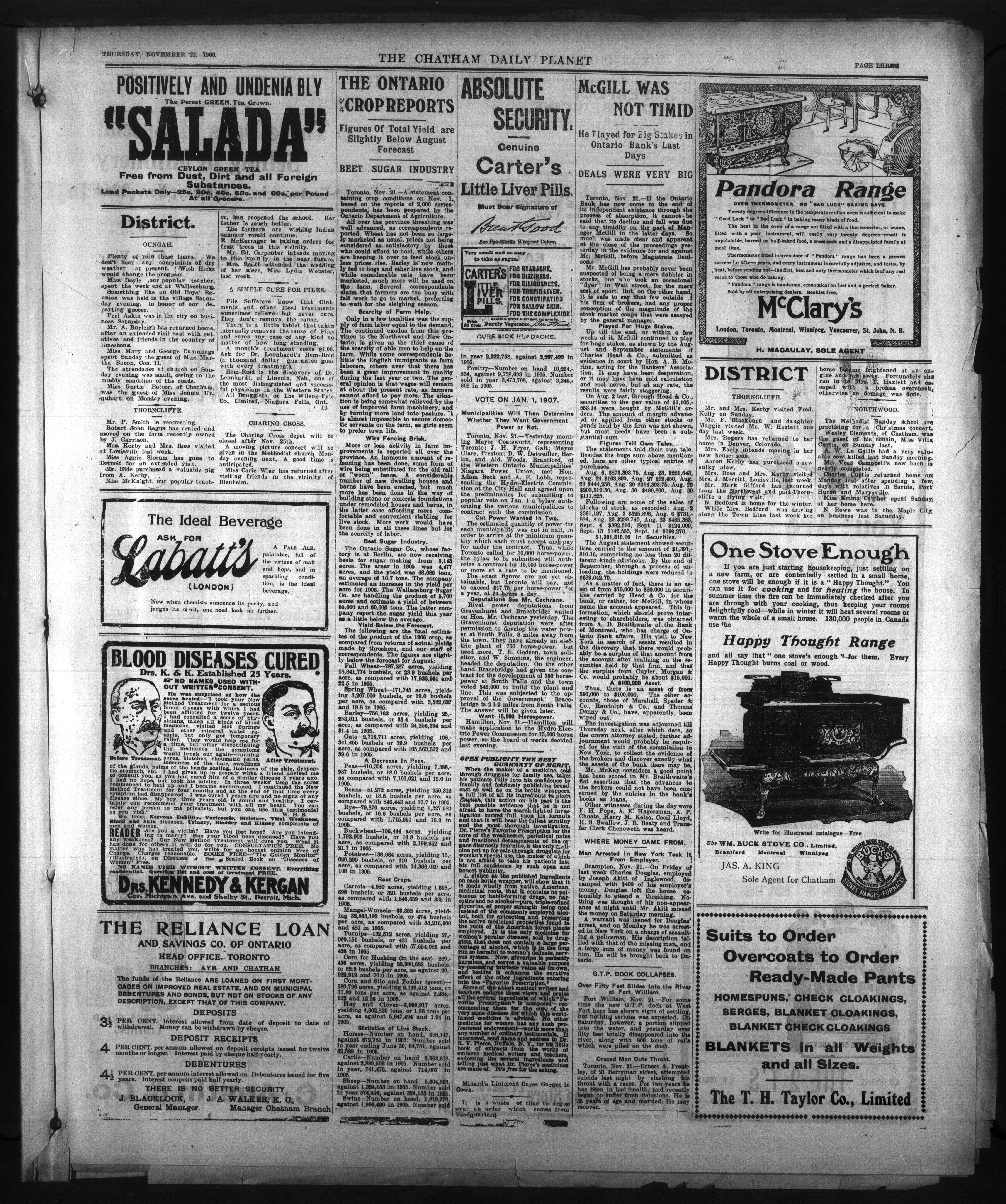 - The Chatham Daily Planet : Vol. XV, No. 281 (November 22, 1906)