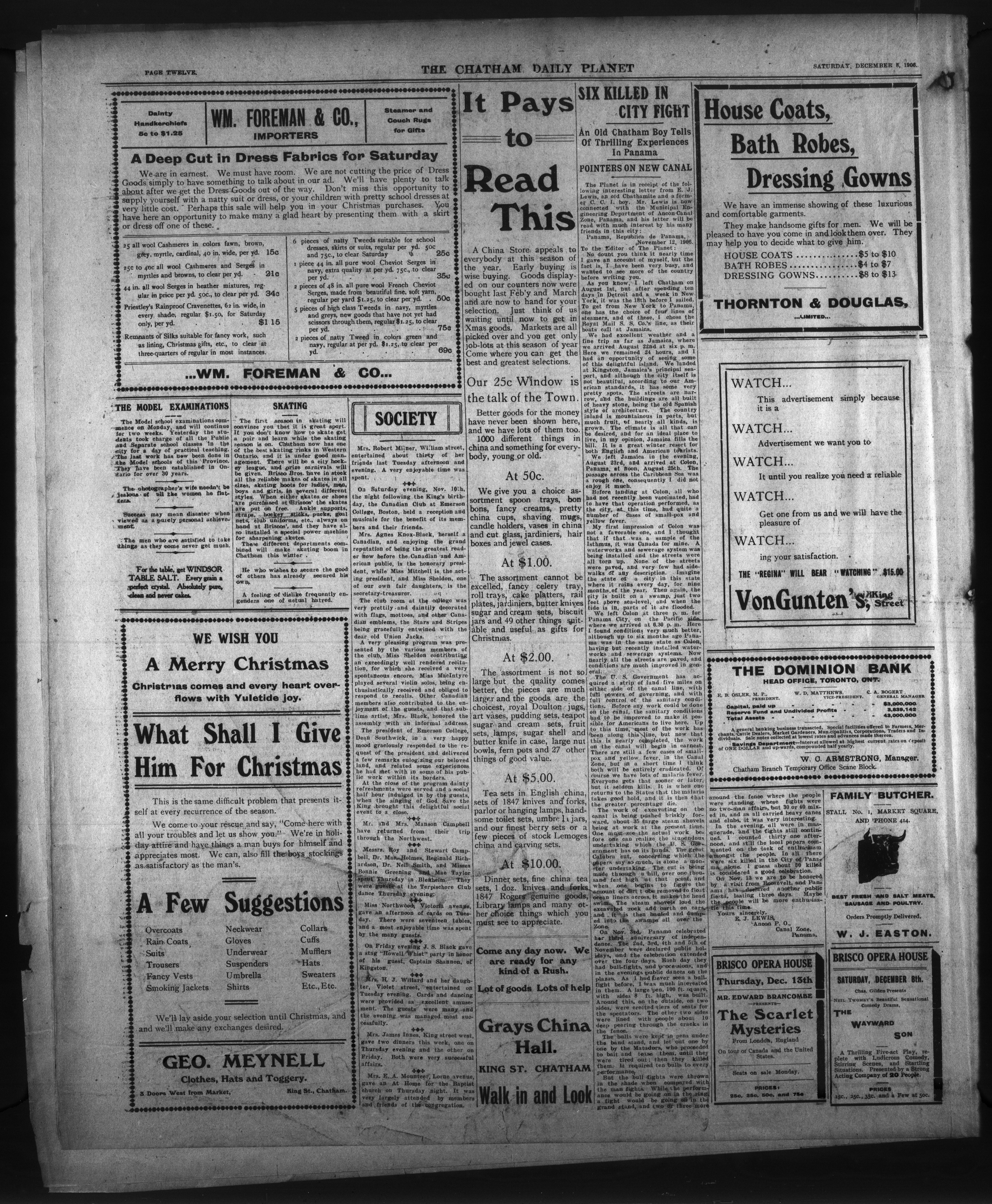 - The Chatham Daily Planet : Vol. XV, No. 295 (December 8, 1906)