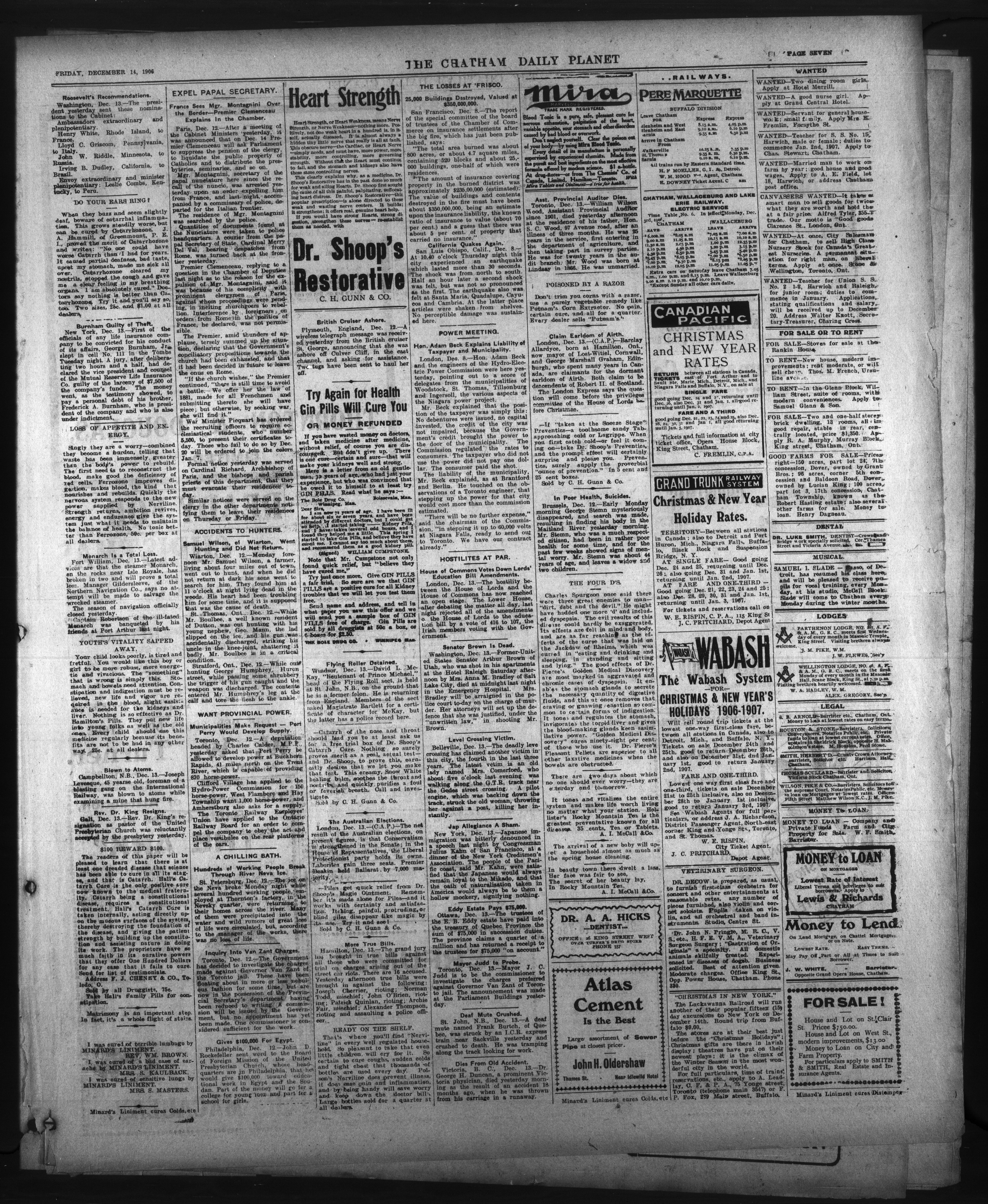 The Chatham Daily Planet : Vol. XV, No. 300 (December 14, 1906)