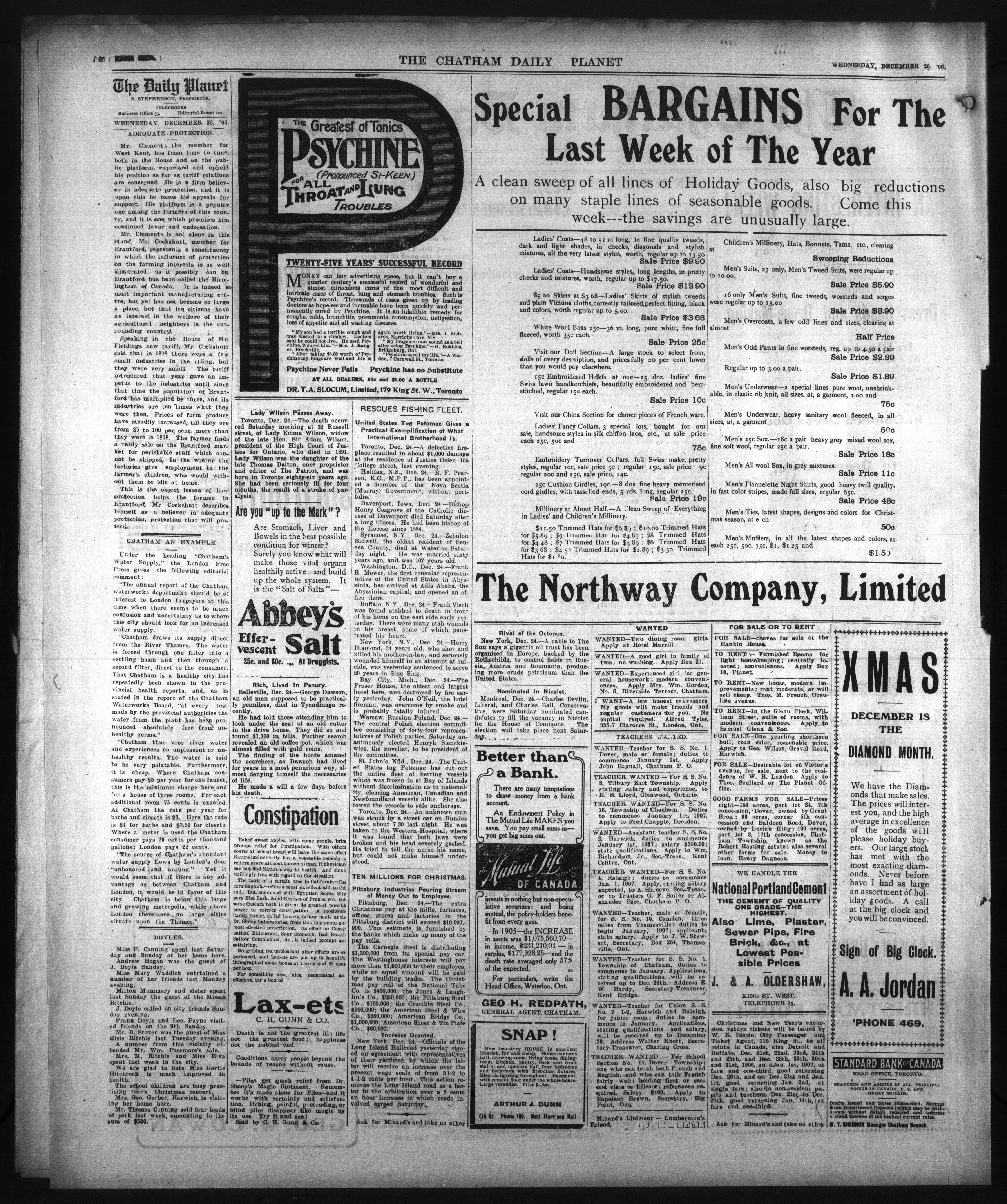 - The Chatham Daily Planet : Vol. XV, No. 310 (December 26, 1906)
