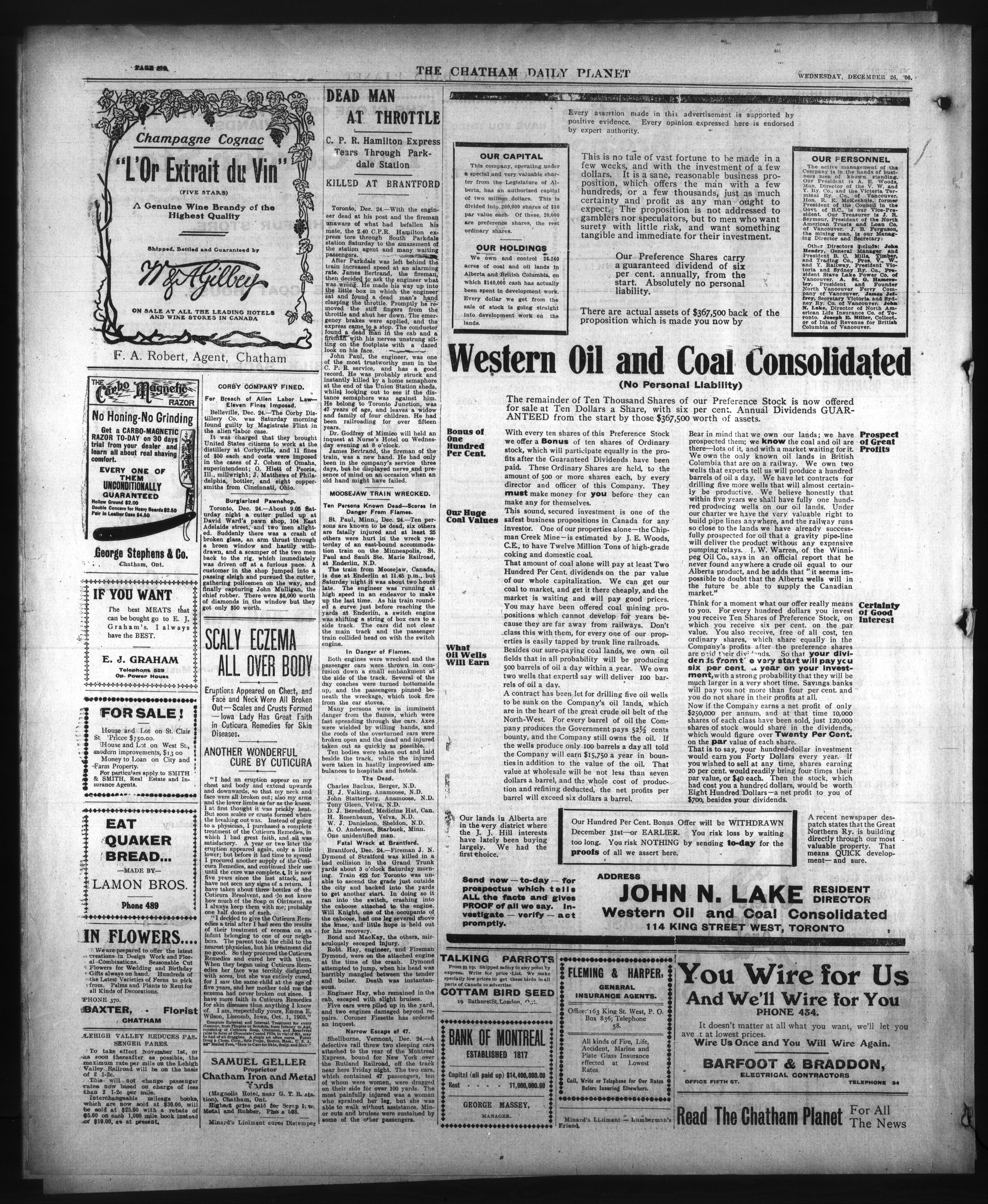 - The Chatham Daily Planet : Vol. XV, No. 310 (December 26, 1906)