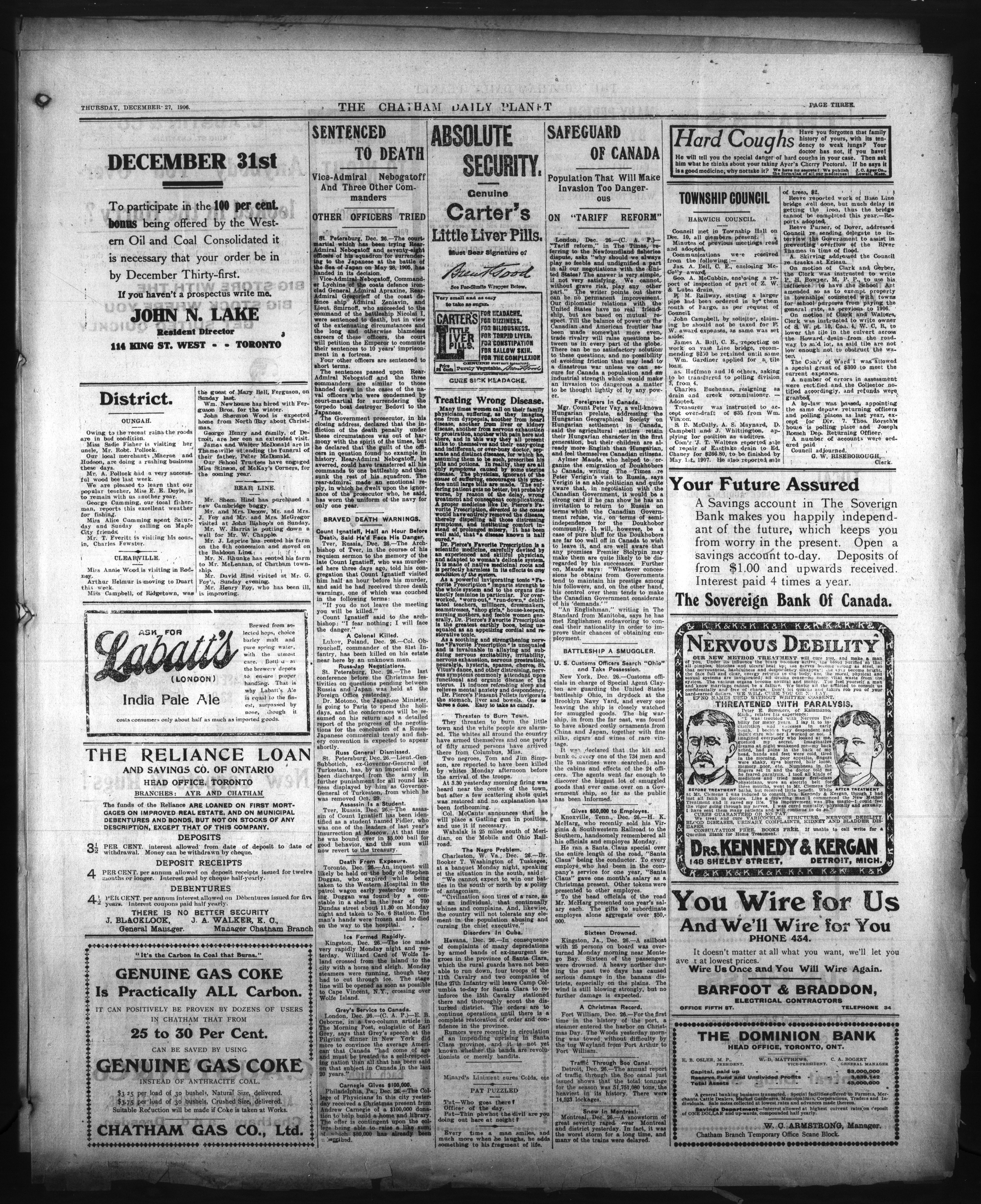 - The Chatham Daily Planet : Vol. XV, No. 311 (December 27, 1906)