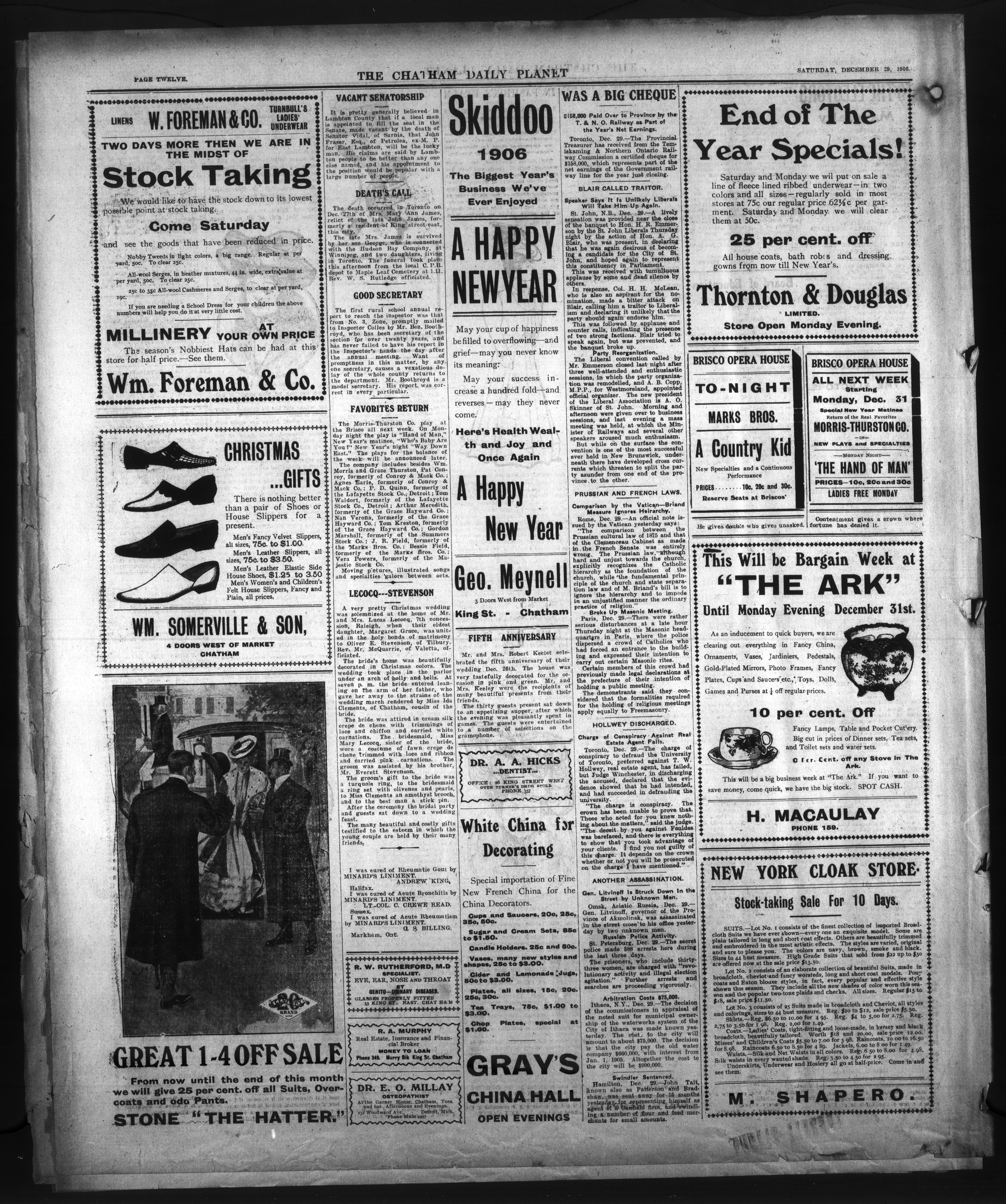 - The Chatham Daily Planet : Vol. XV, No. 313 (December 29, 1906)