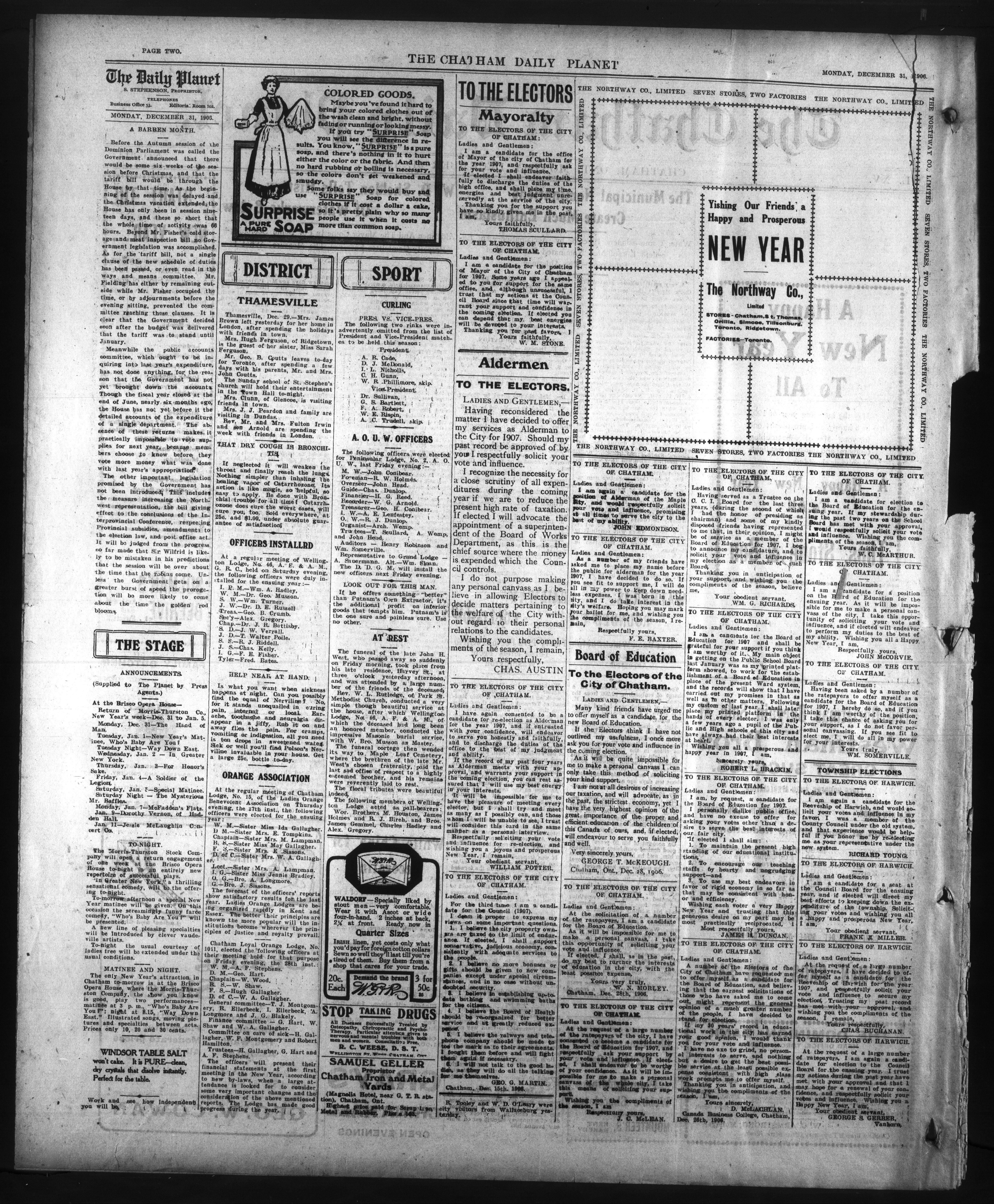 - The Chatham Daily Planet : Vol. XV, No. 314 (December 31, 1906)