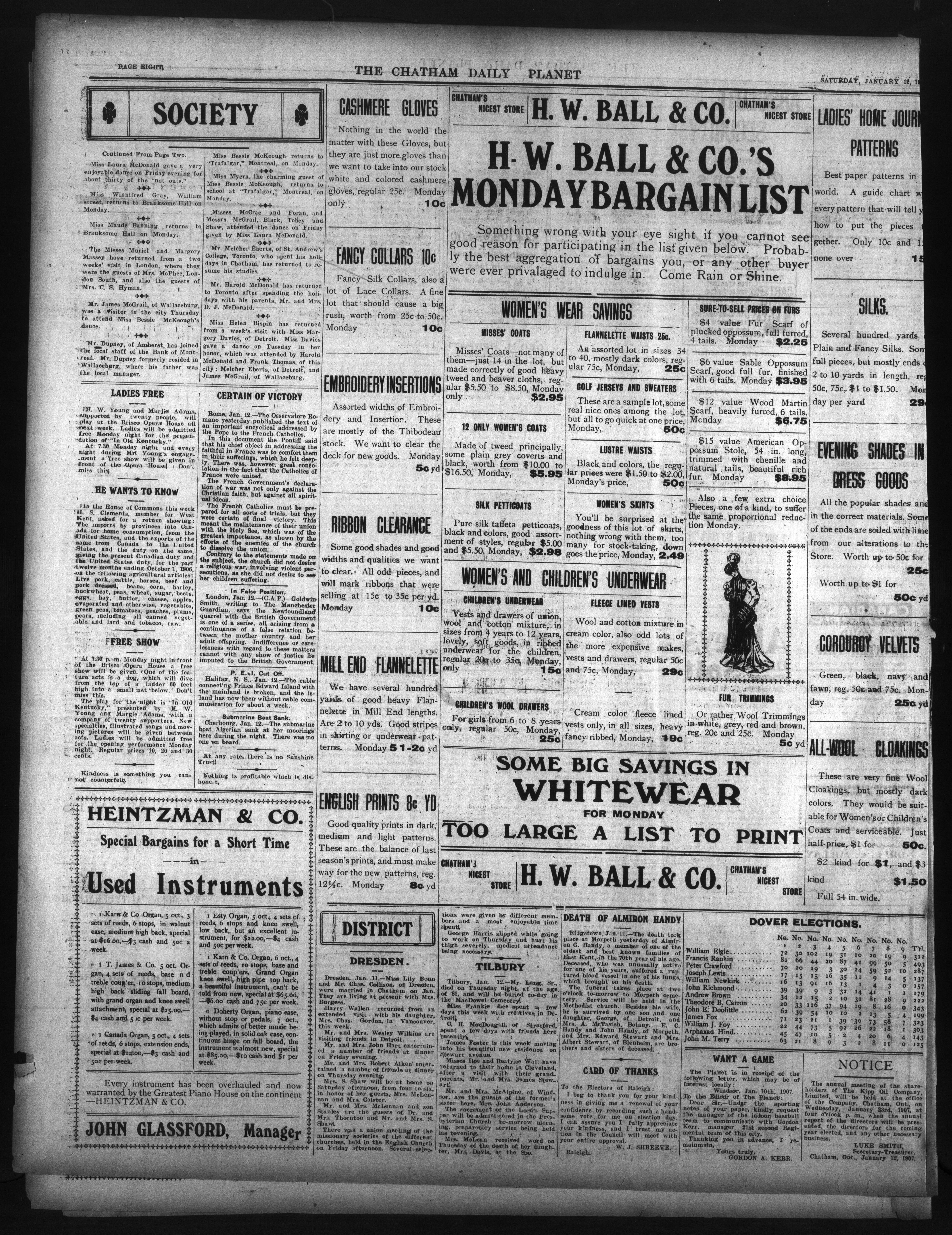 - The Chatham Daily Planet : Vol. XVI, No. 11 (January 12, 1907)