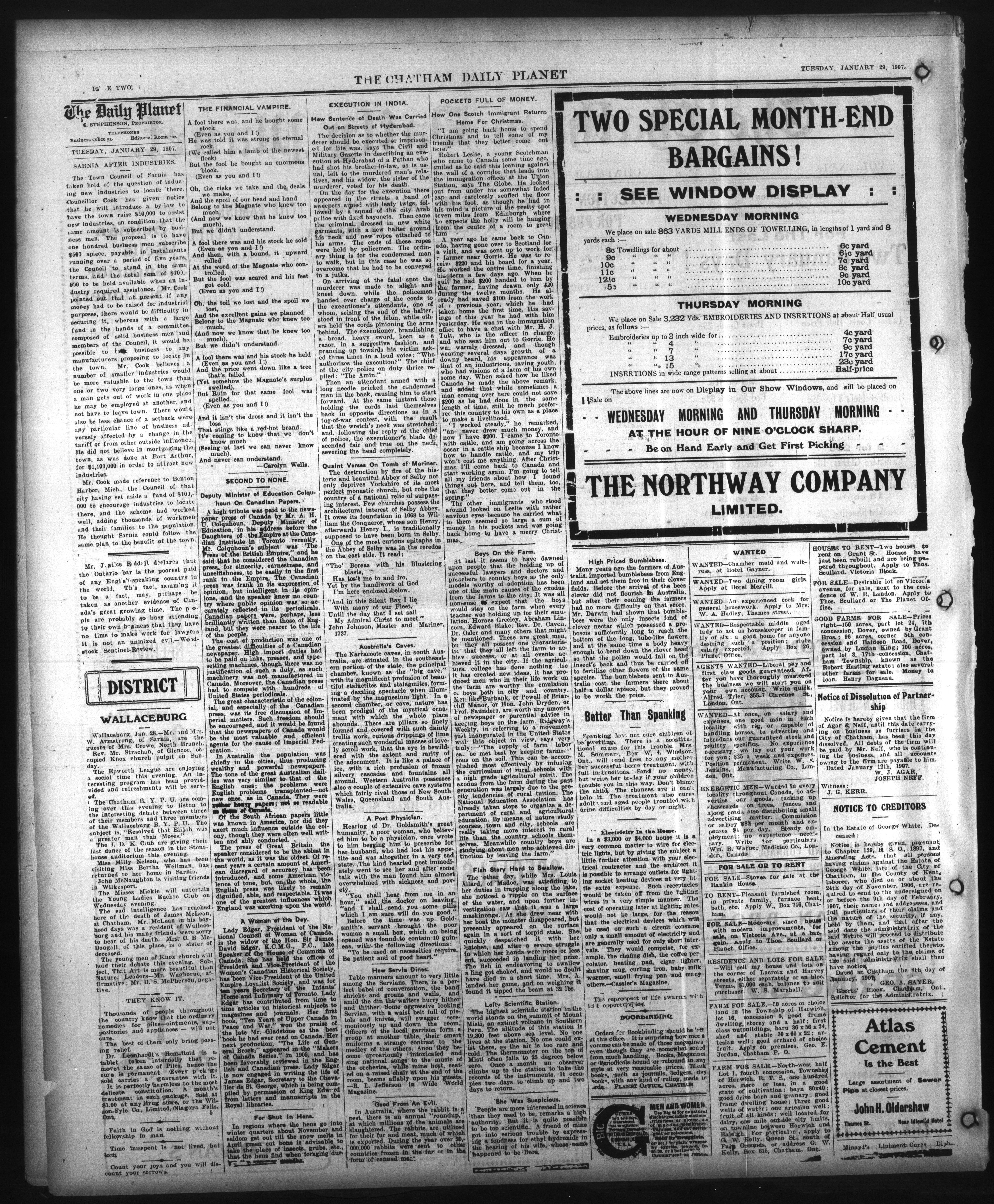 The Chatham Daily Planet. : The Chatham Daily Planet : Vol. XVI, No. 25 (January 29, 1907)