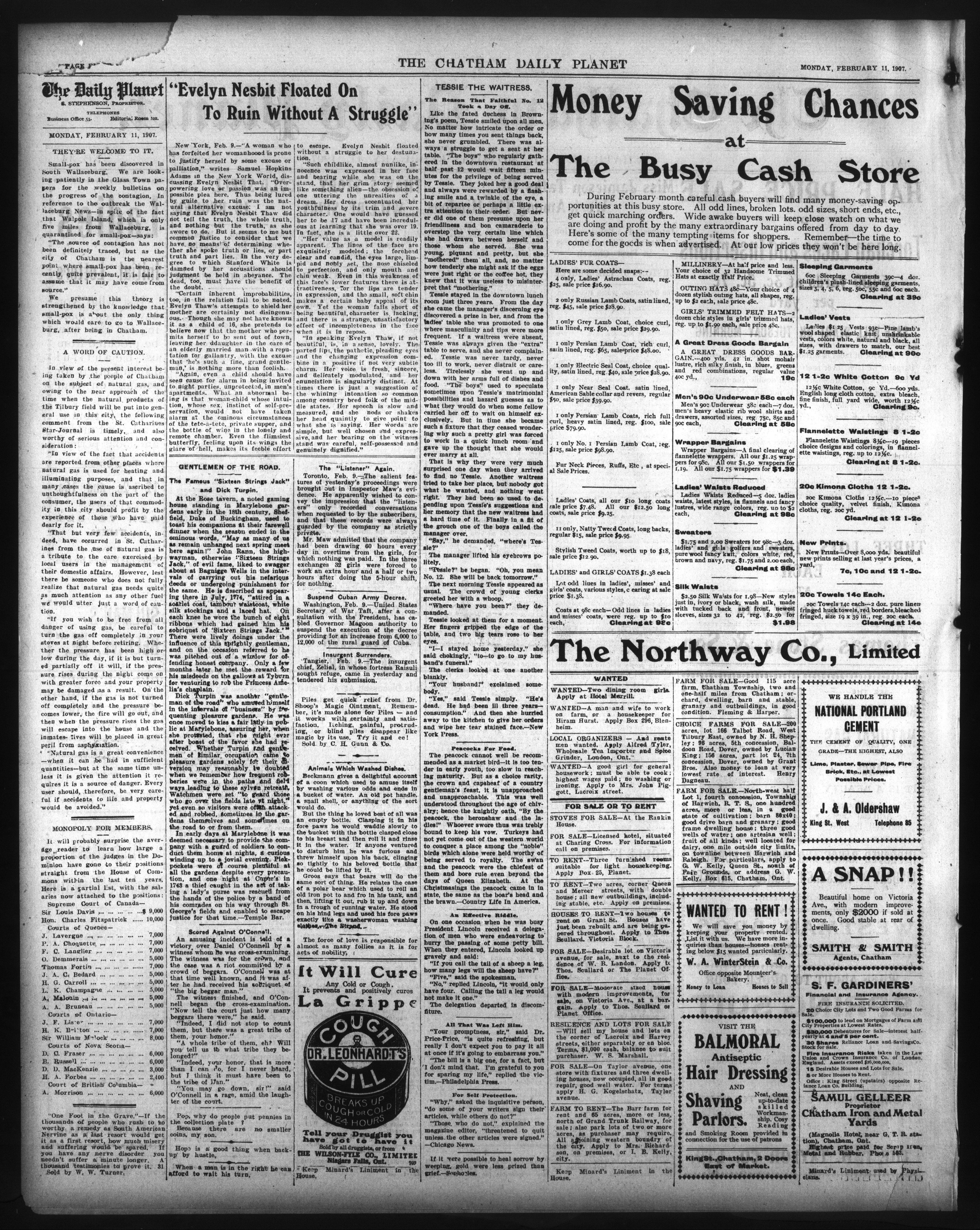 - The Chatham Daily Planet : Vol. XVI, No. 36 (February 11, 1907)