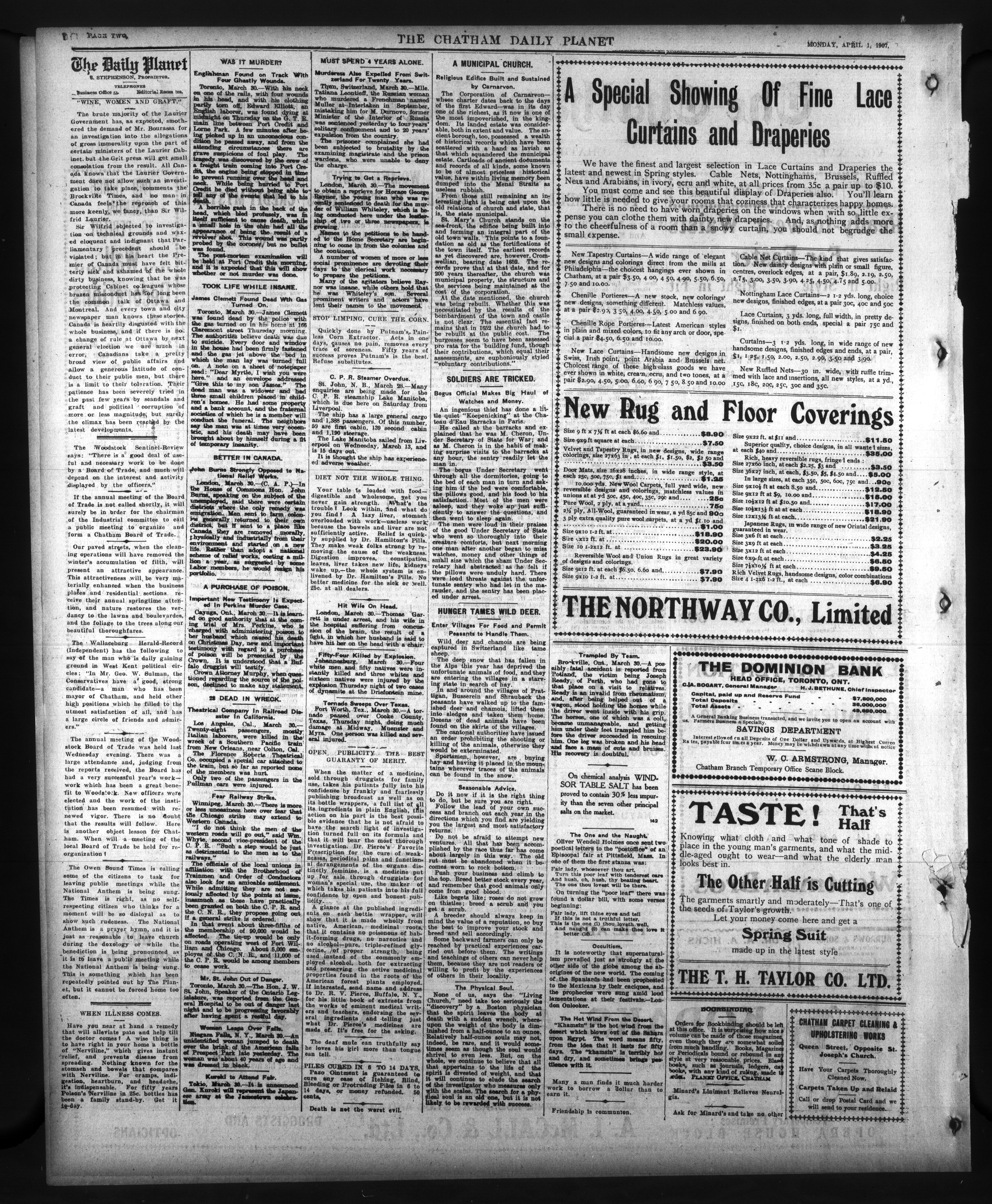 - The Chatham Daily Planet : Vol. XVI, No. 78 (April 1, 1907)