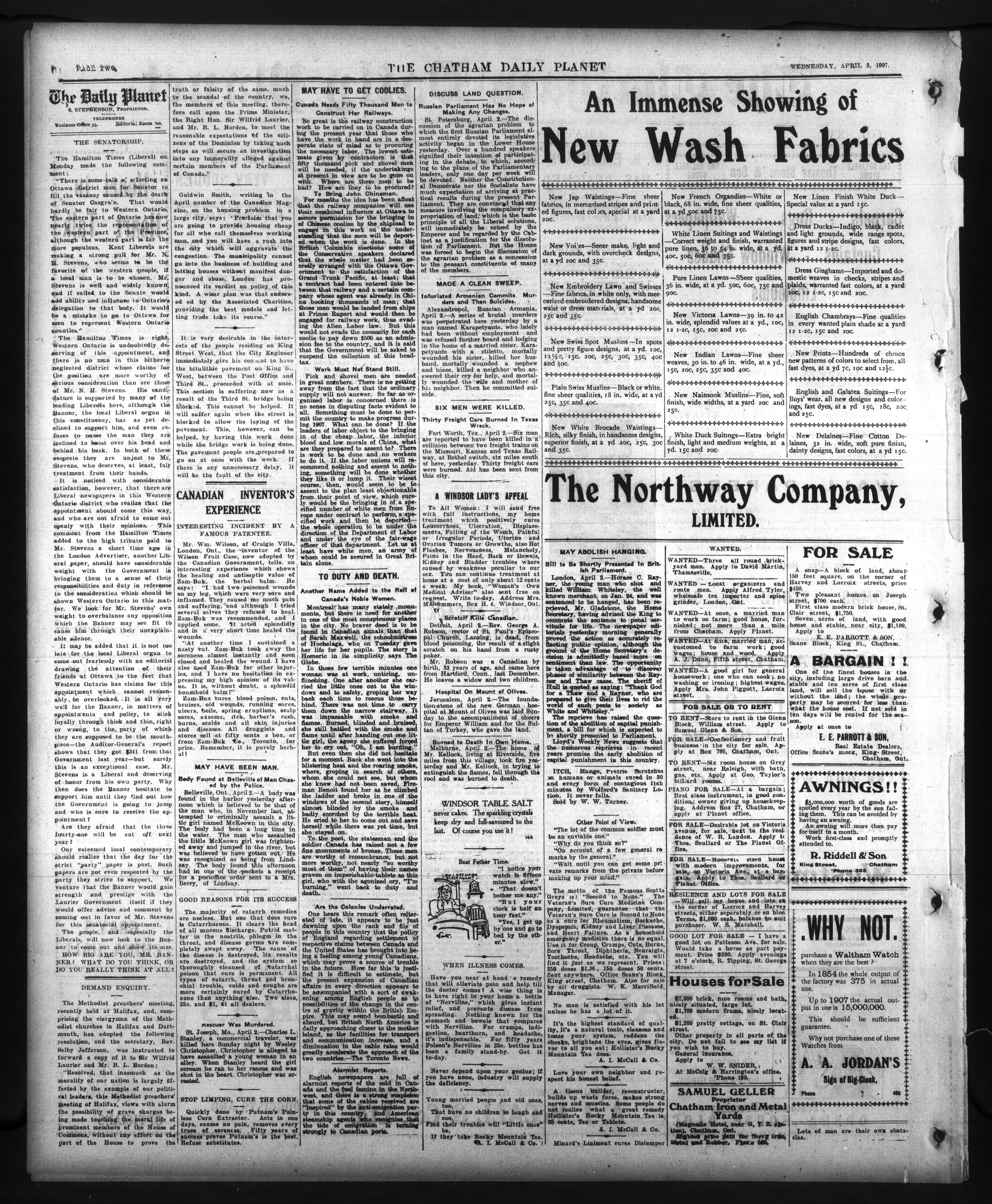 - The Chatham Daily Planet : Vol. XVI, No. 80 (April 3, 1907)