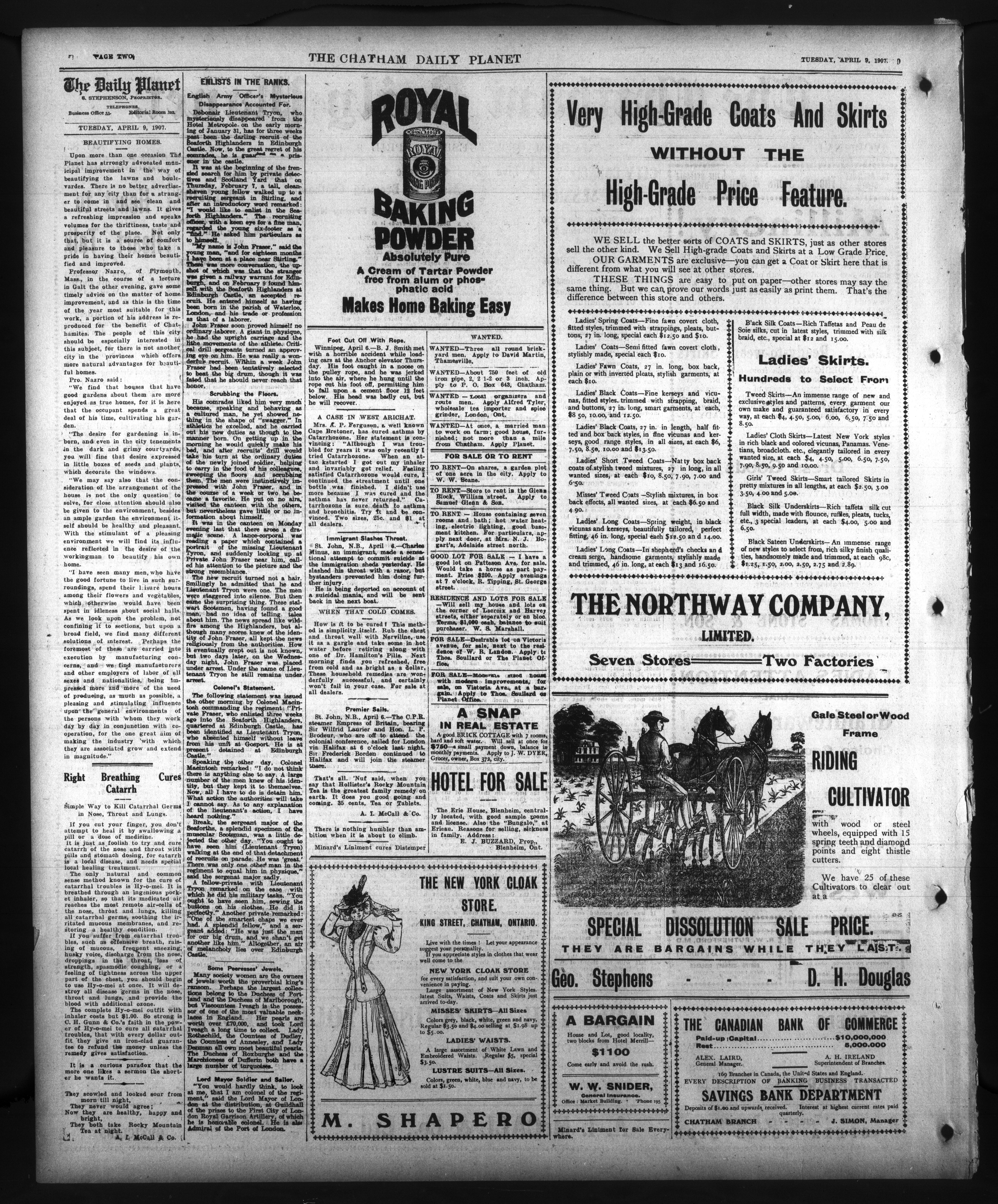 - The Chatham Daily Planet : Vol. XVI, No. 85 (April 9, 1907)