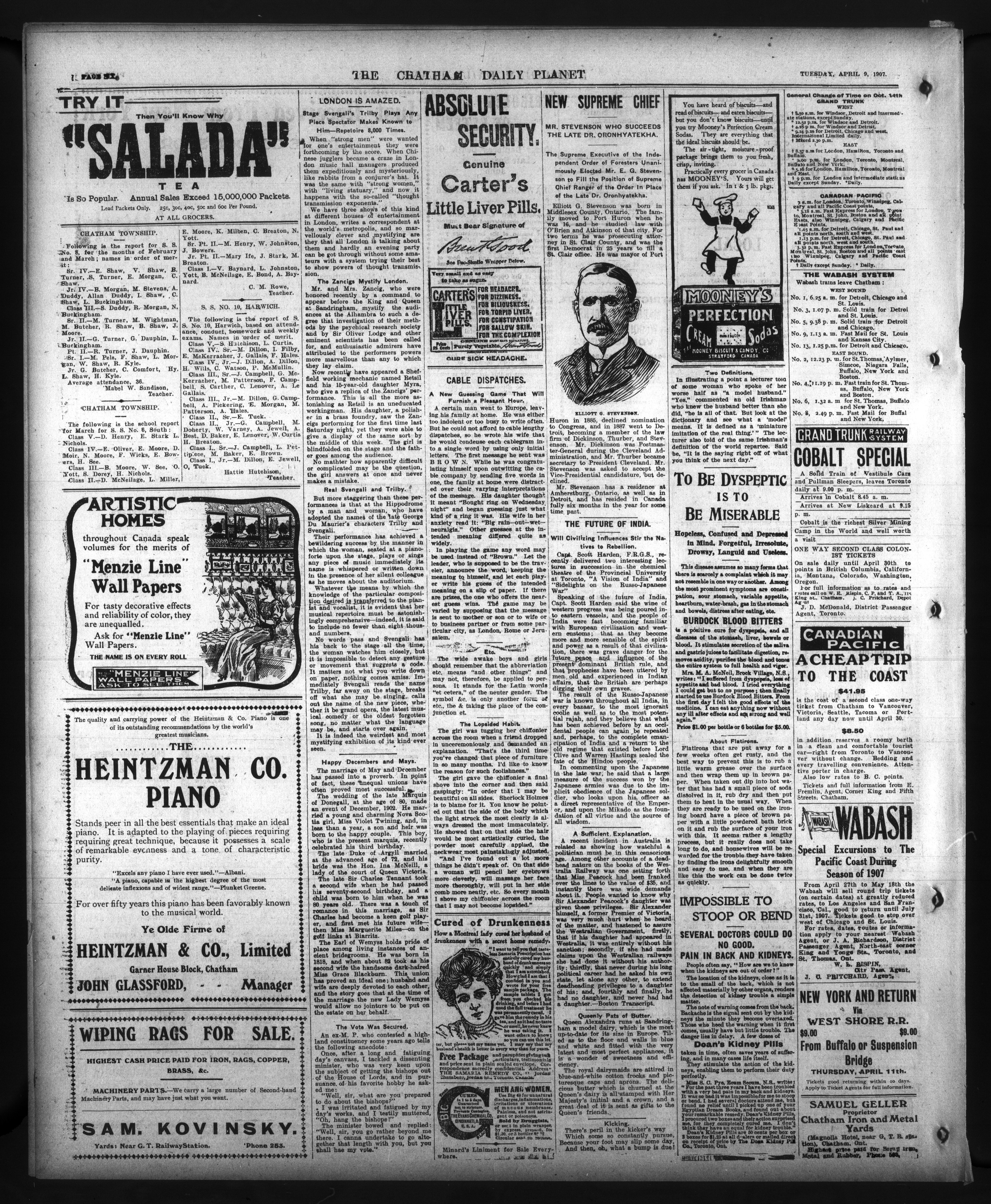 - The Chatham Daily Planet : Vol. XVI, No. 85 (April 9, 1907)