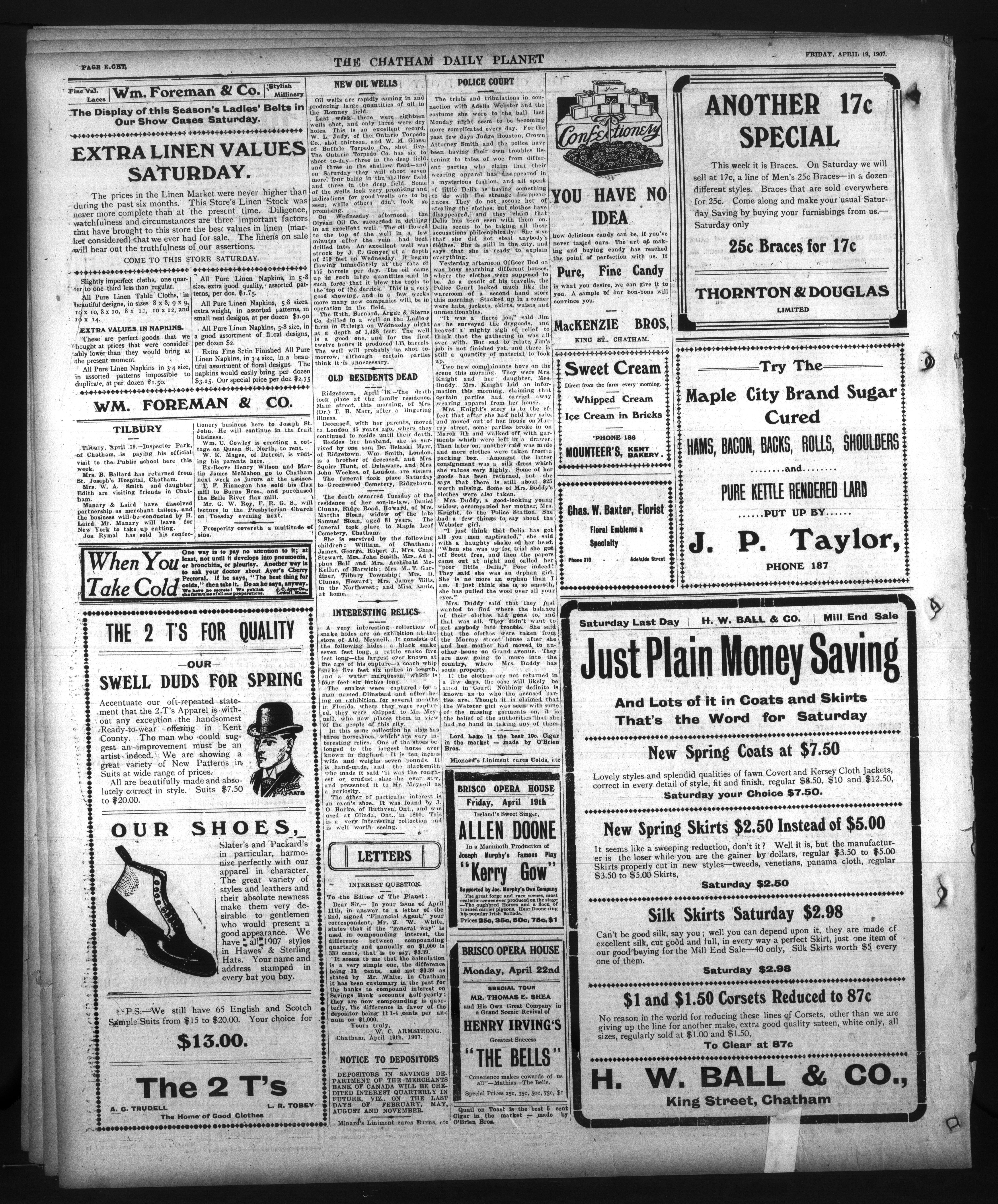 - The Chatham Daily Planet : Vol. XVI, No. 94 (April 19, 1907)
