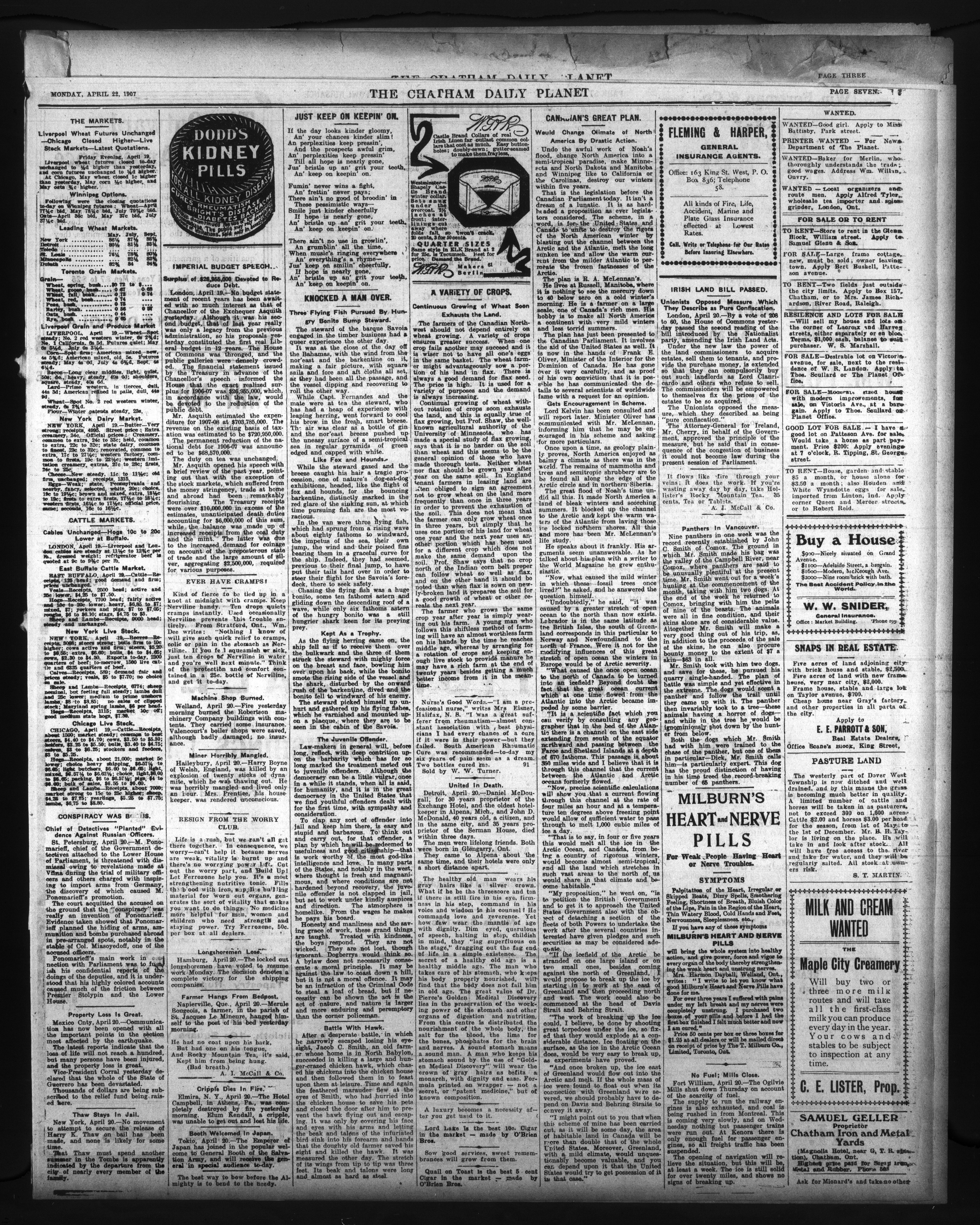The Chatham Daily Planet. : The Chatham Daily Planet : Vol. XVI, No. 96 (April 22, 1907)