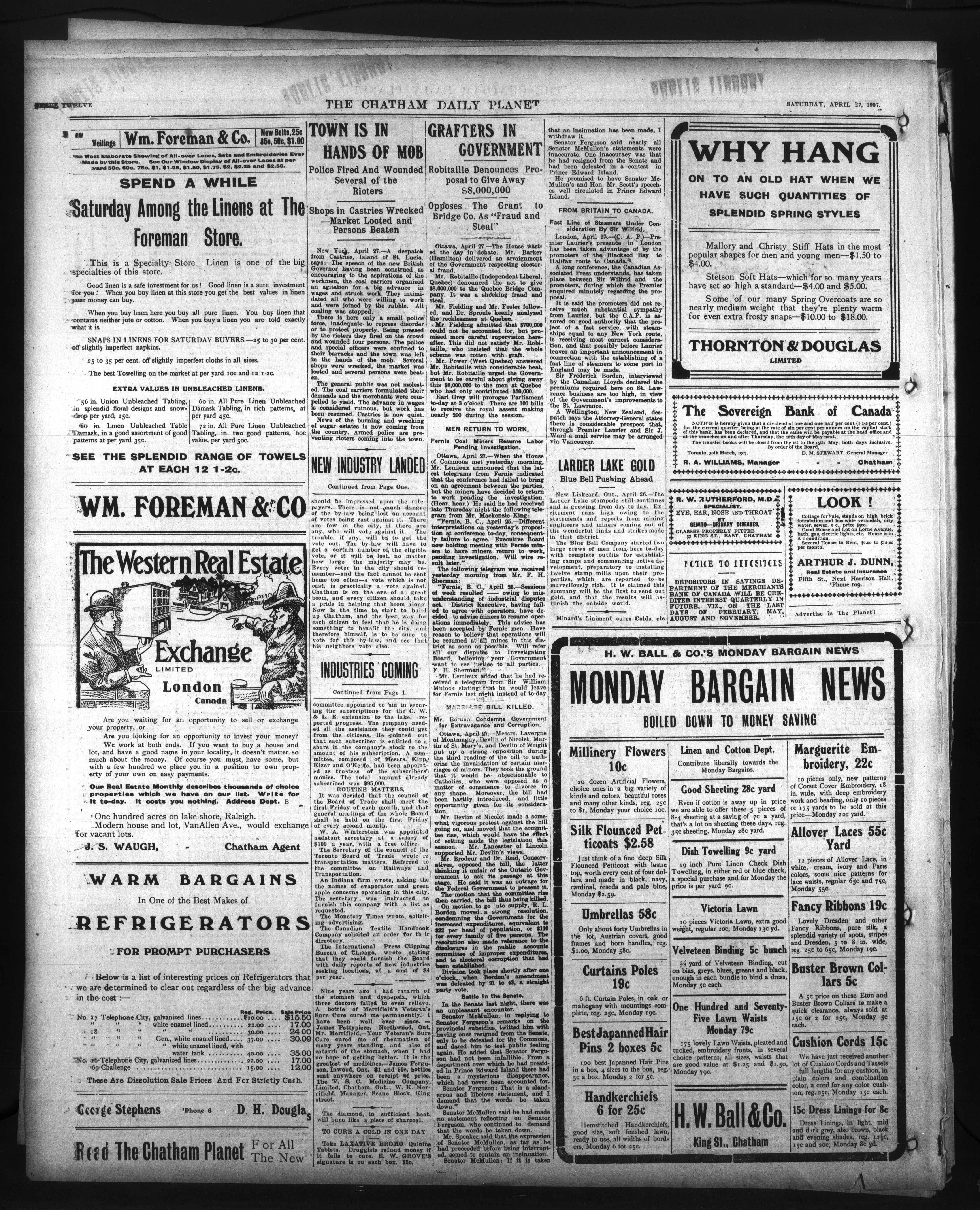 - The Chatham Daily Planet : Vol. XVI, No. 101 (April 27, 1907)