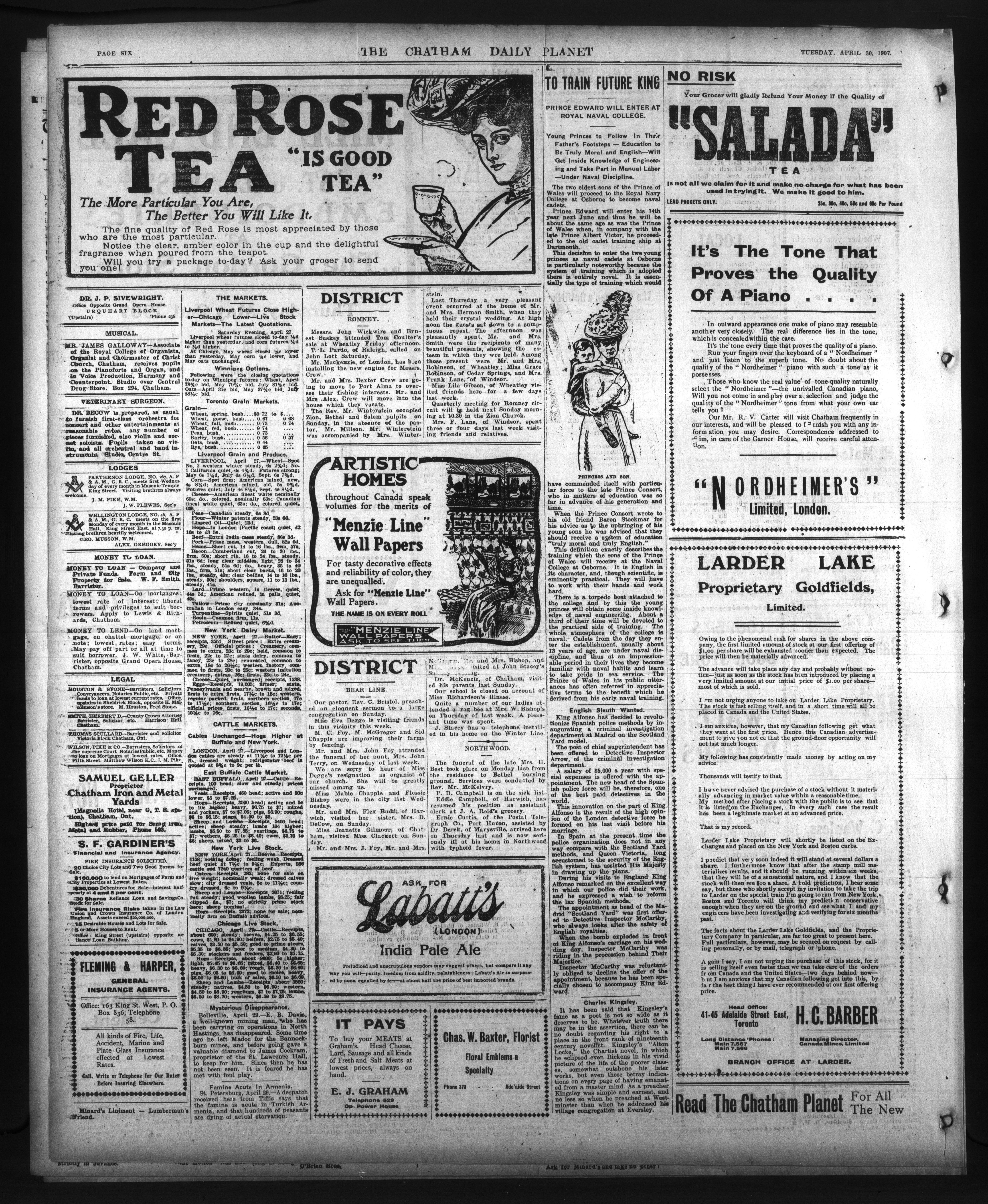 - The Chatham Daily Planet : Vol. XVI, No. 103 (April 30, 1907)