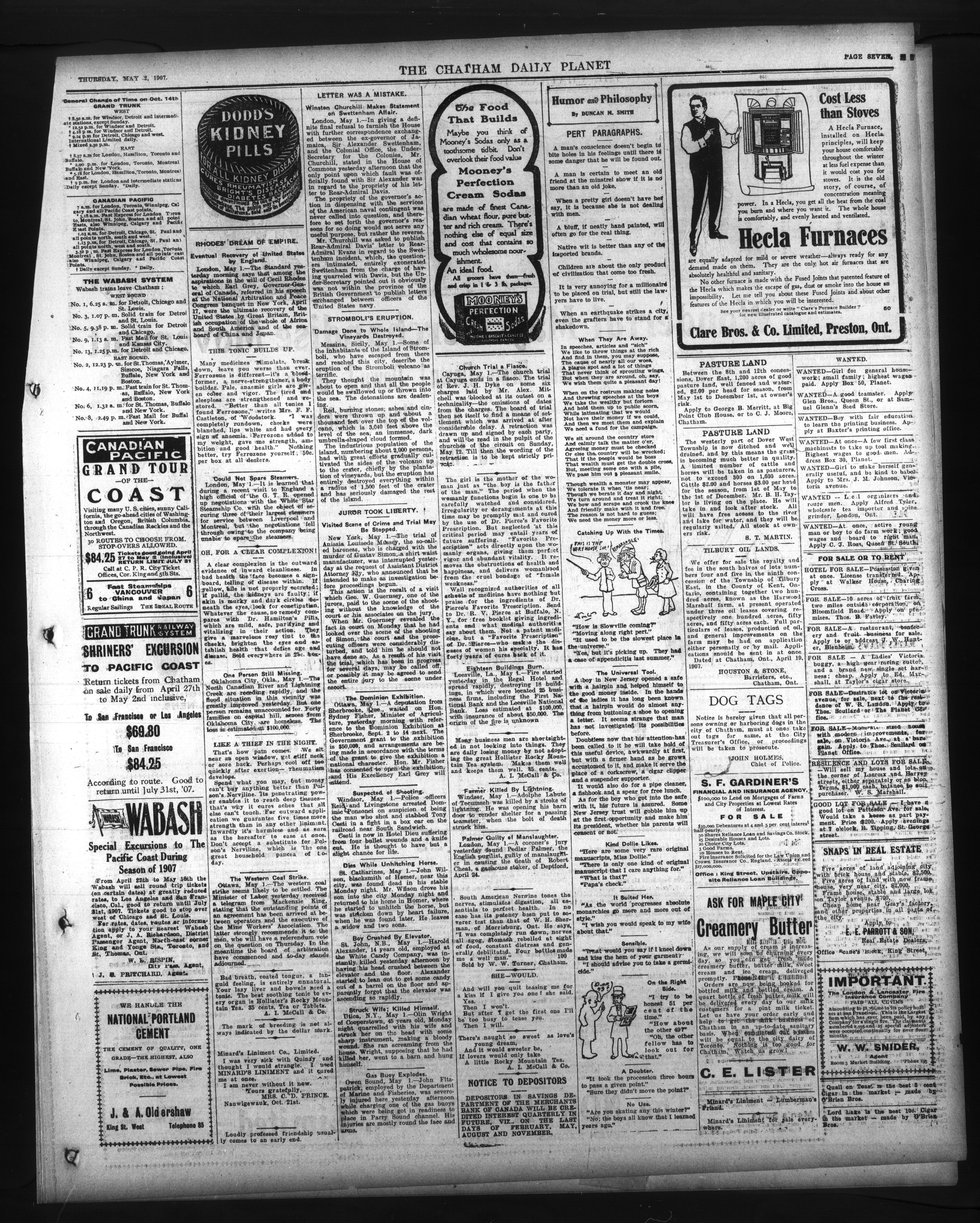 - The Chatham Daily Planet : Vol. XVI, No. 105 (May 2, 1907)
