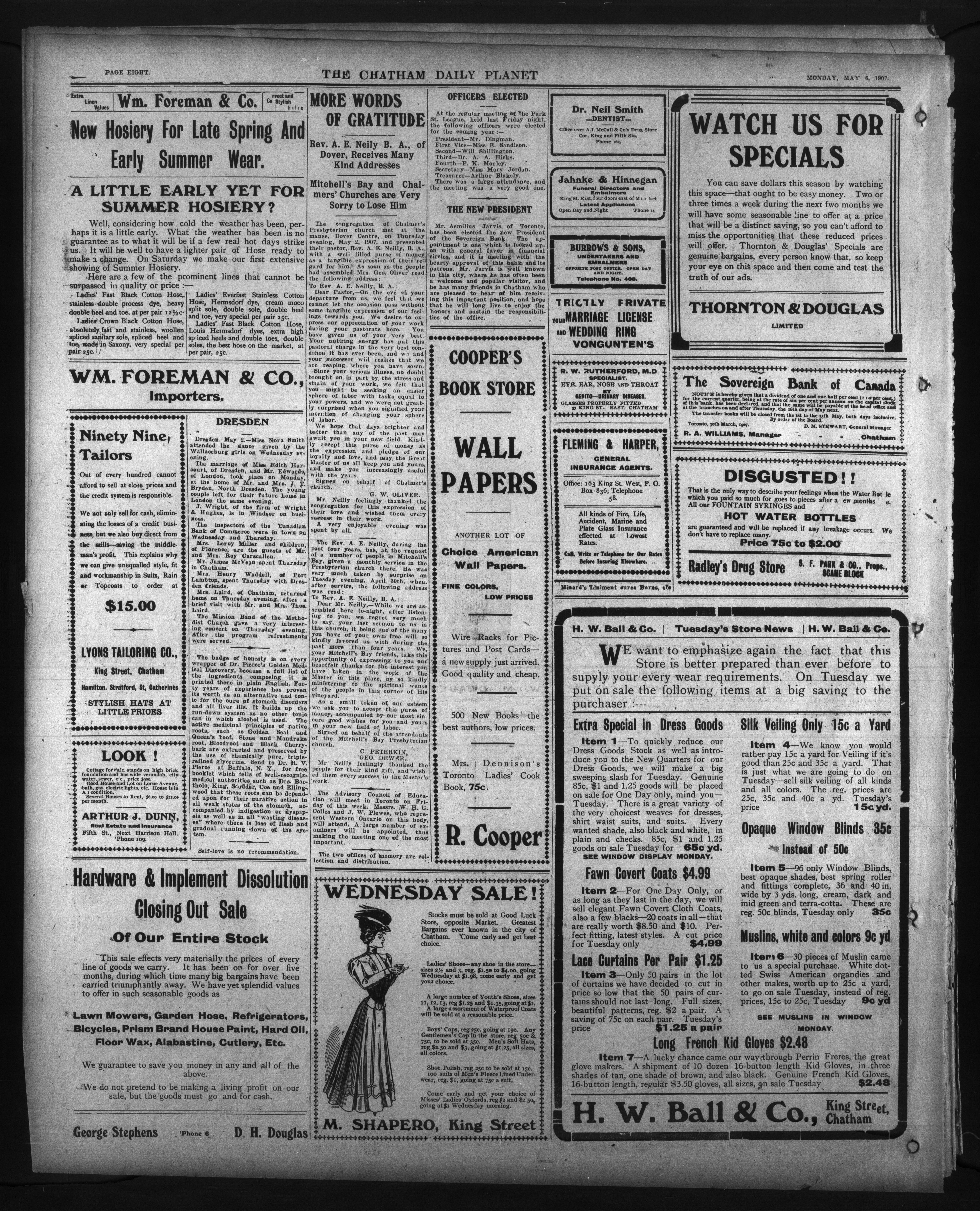 - The Chatham Daily Planet : Vol. XVI, No. 108 (May 6, 1907)