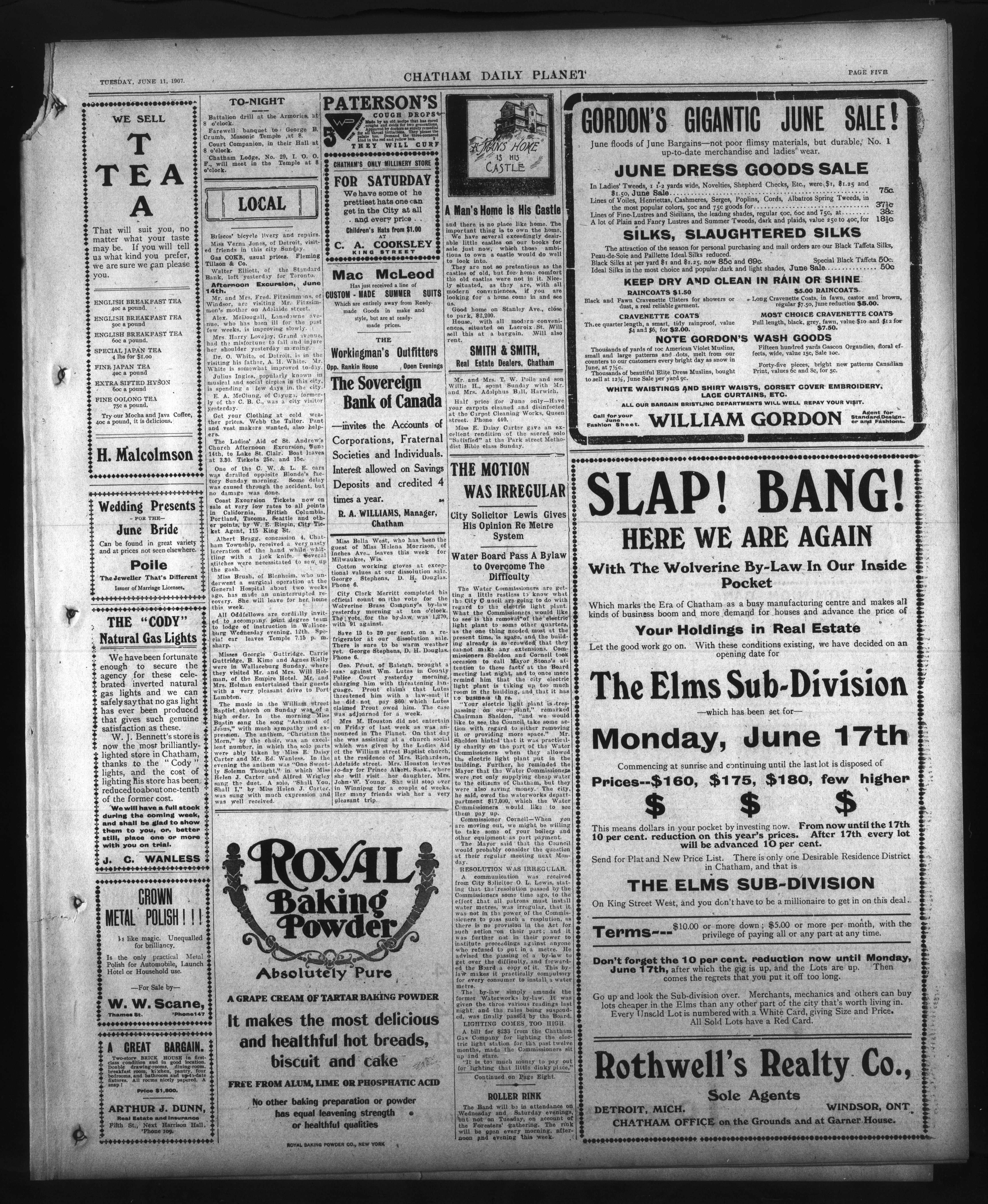 - The Chatham Daily Planet : Vol. XVI, No. 139 (June 11, 1907)