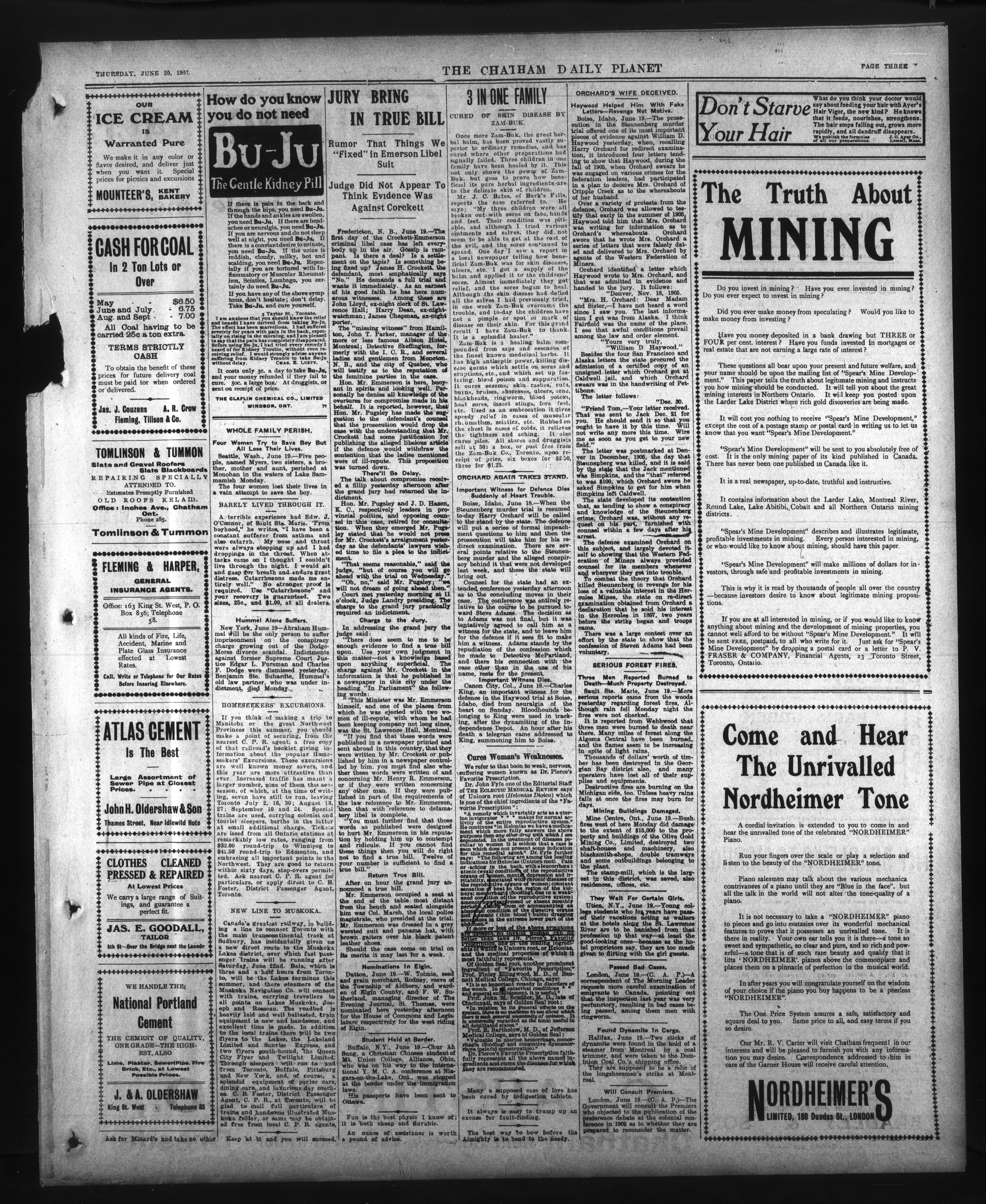 - The Chatham Daily Planet : Vol. XVI, No. 147 (June 20, 1907)