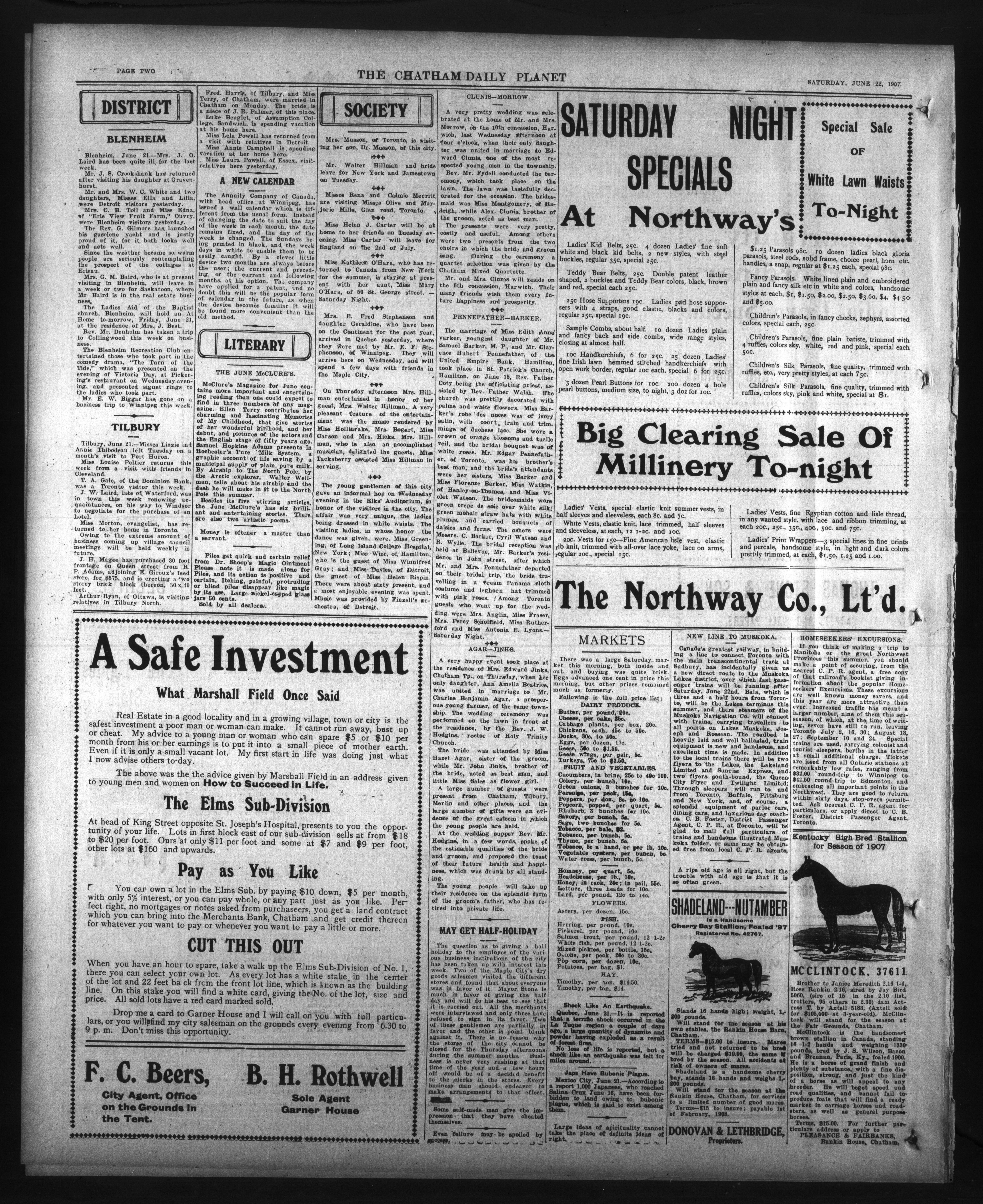 - The Chatham Daily Planet : Vol. XVI, No. 149 (June 22, 1907)