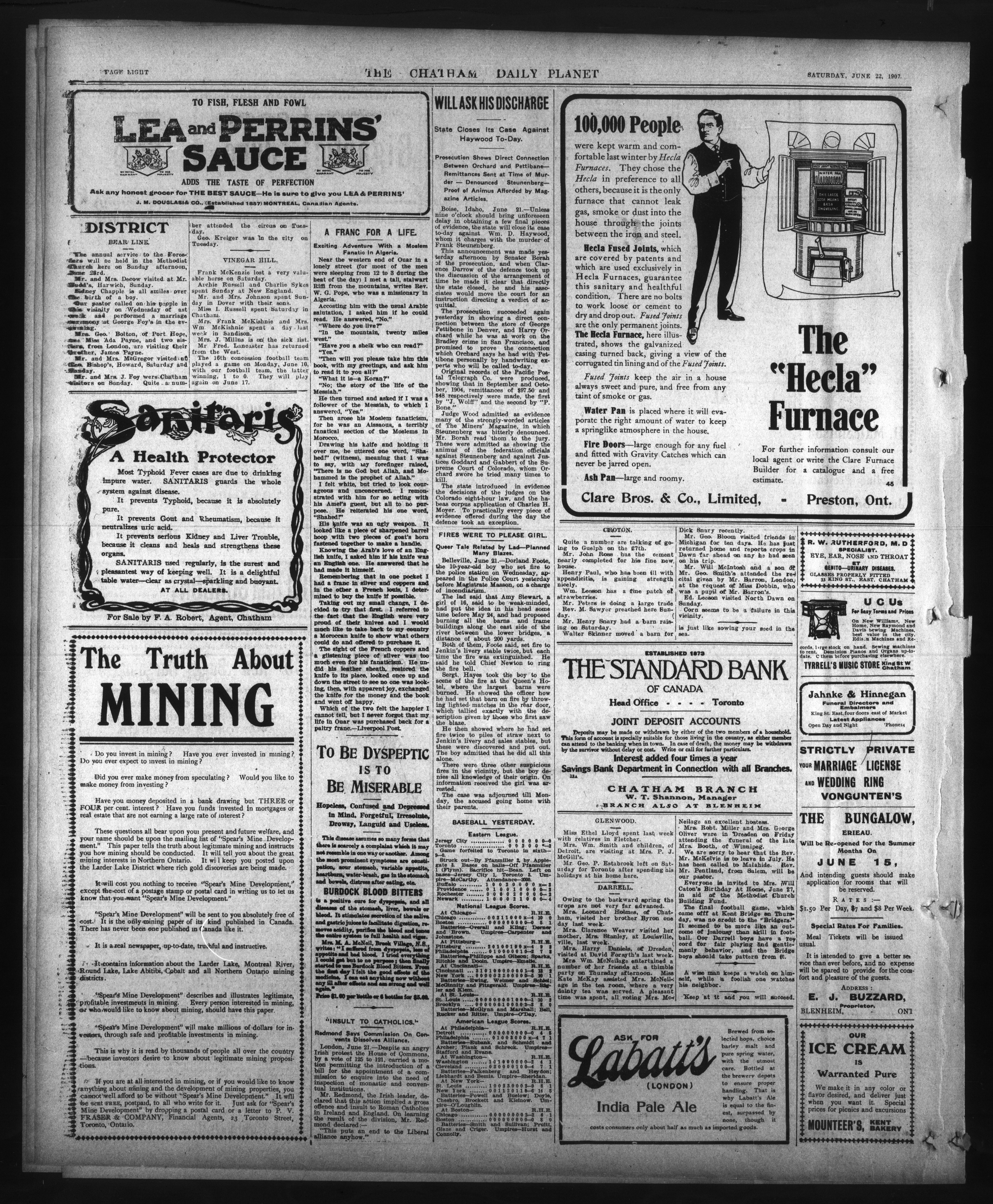- The Chatham Daily Planet : Vol. XVI, No. 149 (June 22, 1907)