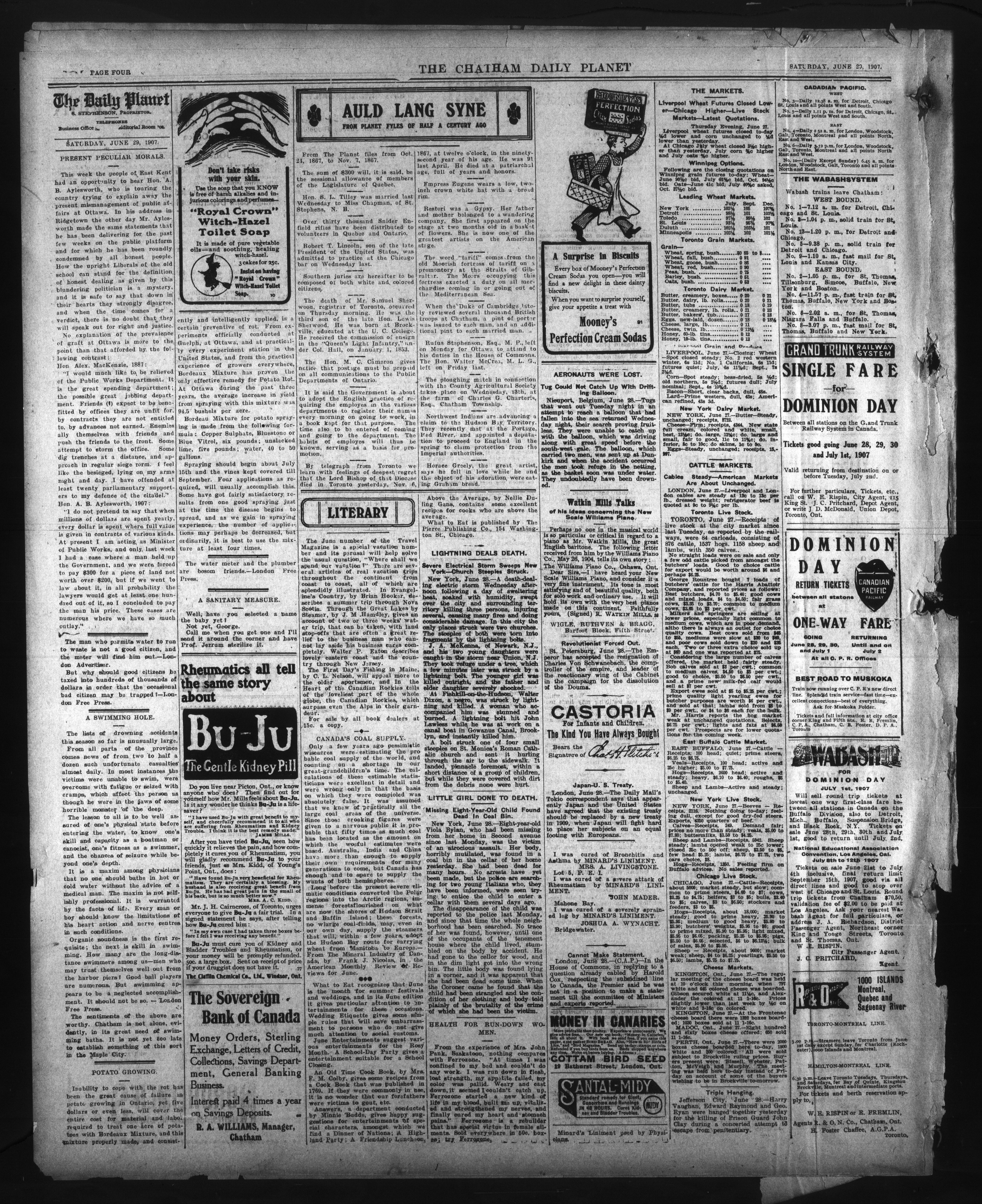 - The Chatham Daily Planet : Vol. XVI, No. 155 (June 29, 1907)