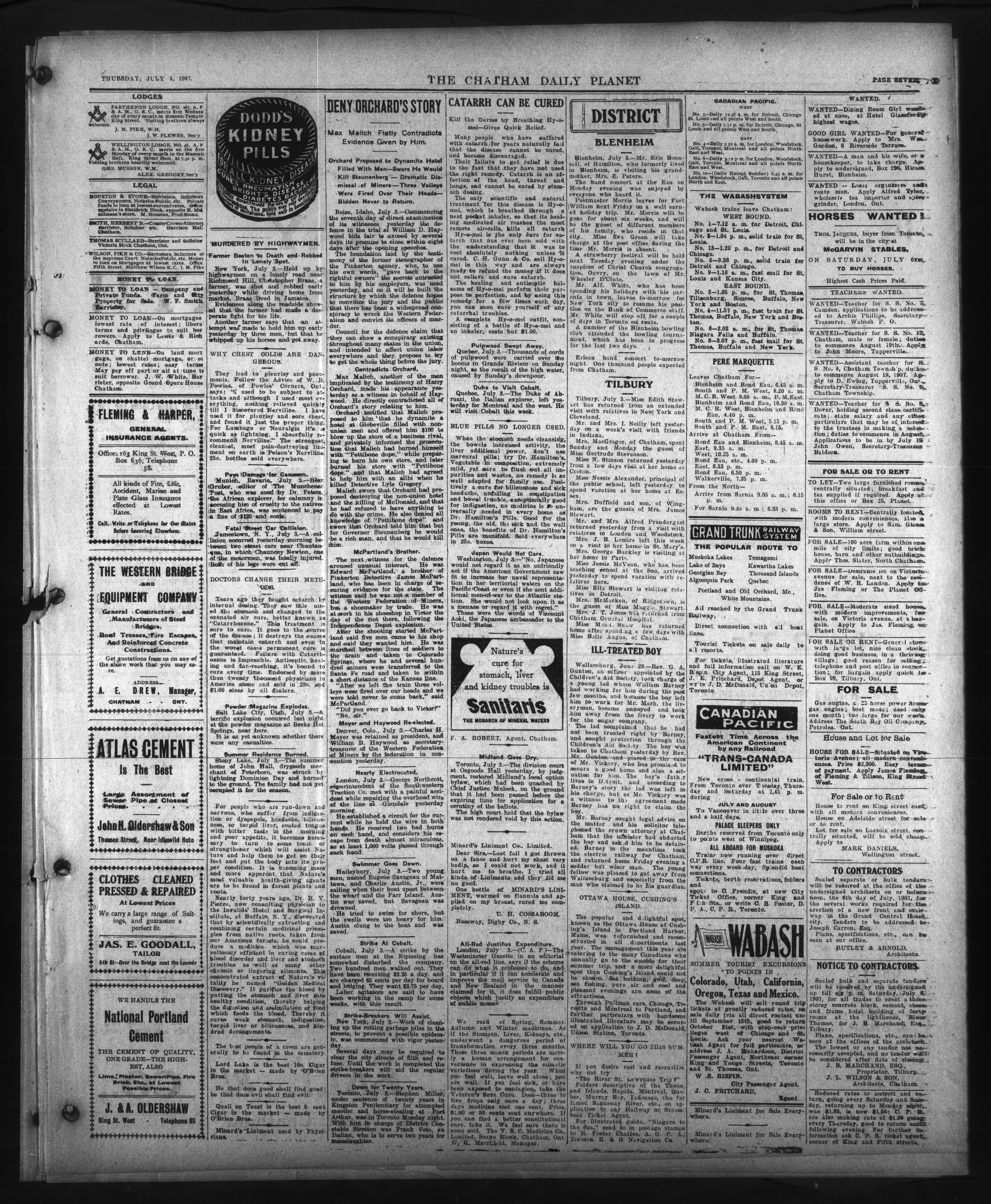 - The Chatham Daily Planet : Vol. XVI, No. 159 (July 4, 1907)
