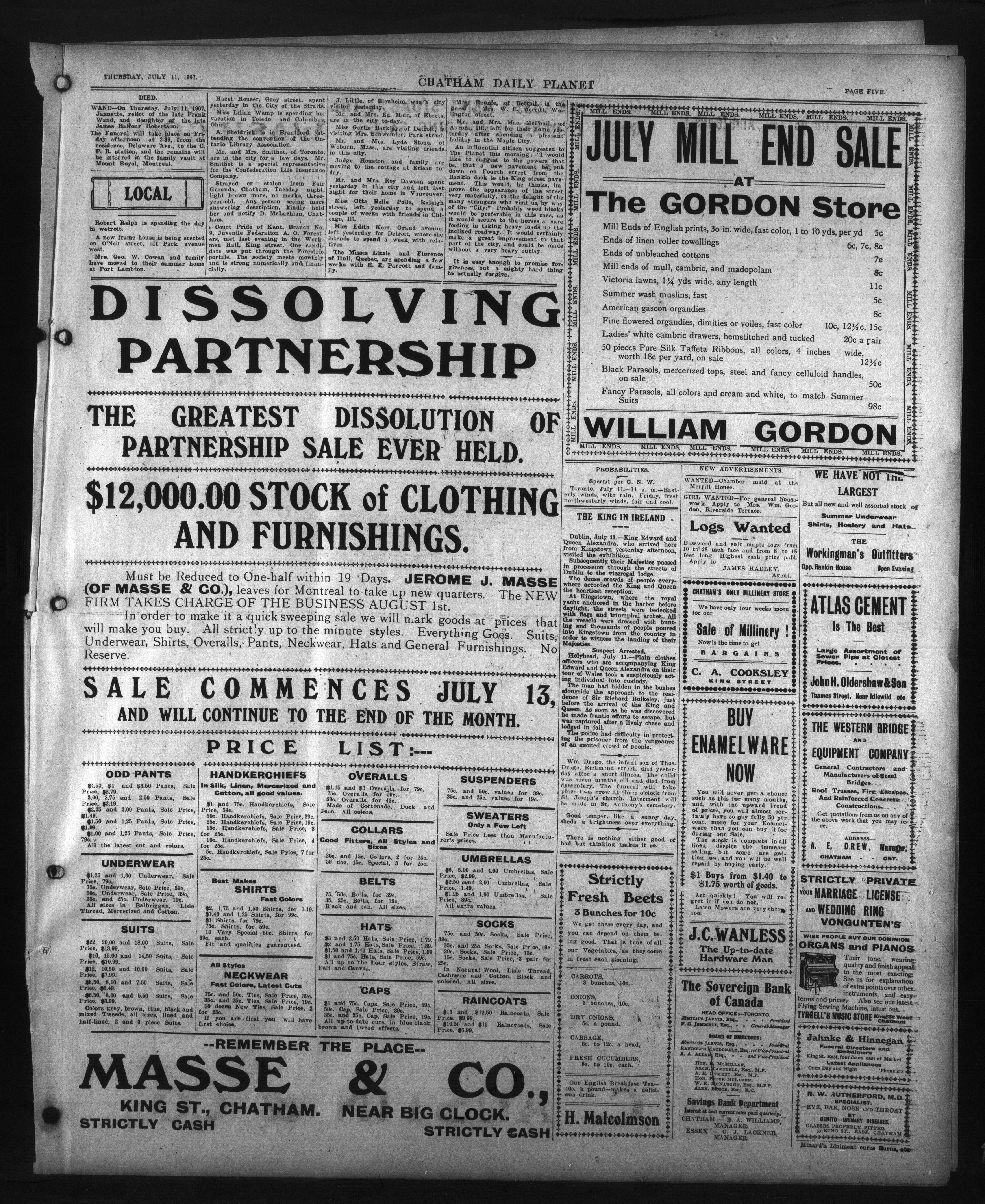The Chatham Daily Planet : Vol. XVI, No. 165 (July 11, 1907)