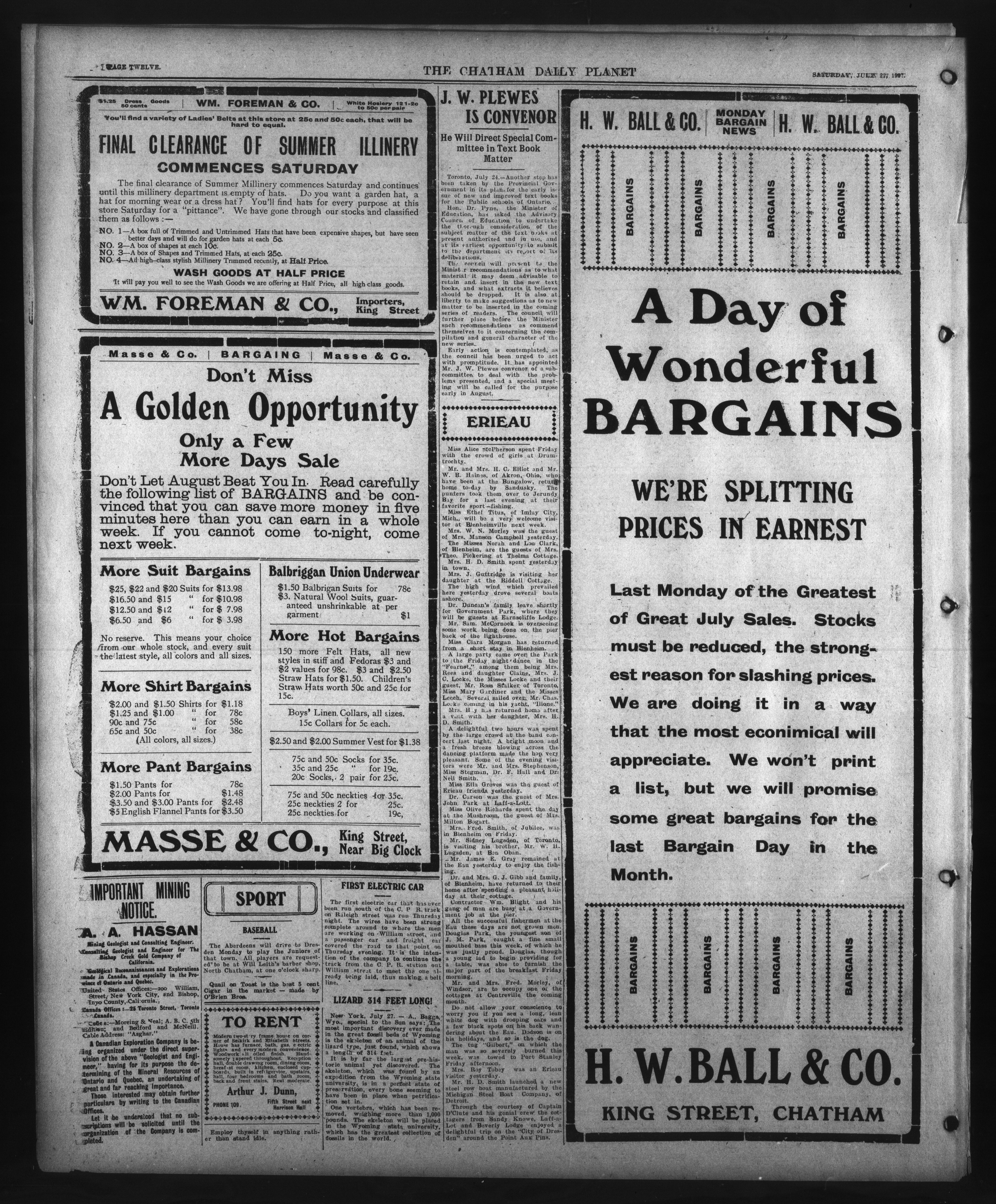 - The Chatham Daily Planet : Vol. XVI, No. 179 (July 27, 1907)