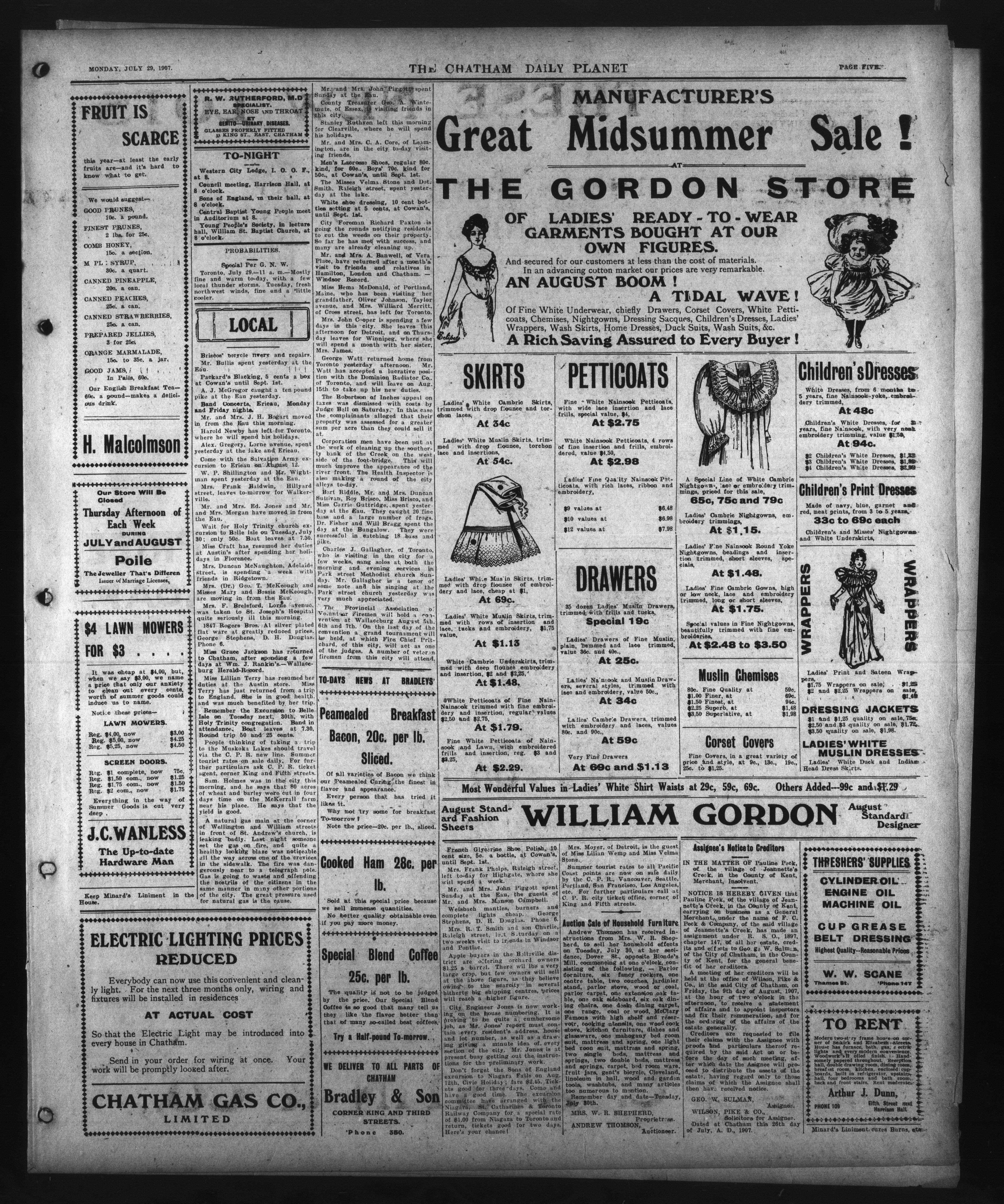 The Chatham Daily Planet. : The Chatham Daily Planet : Vol. XVI, No. 180 (July 29, 1907)