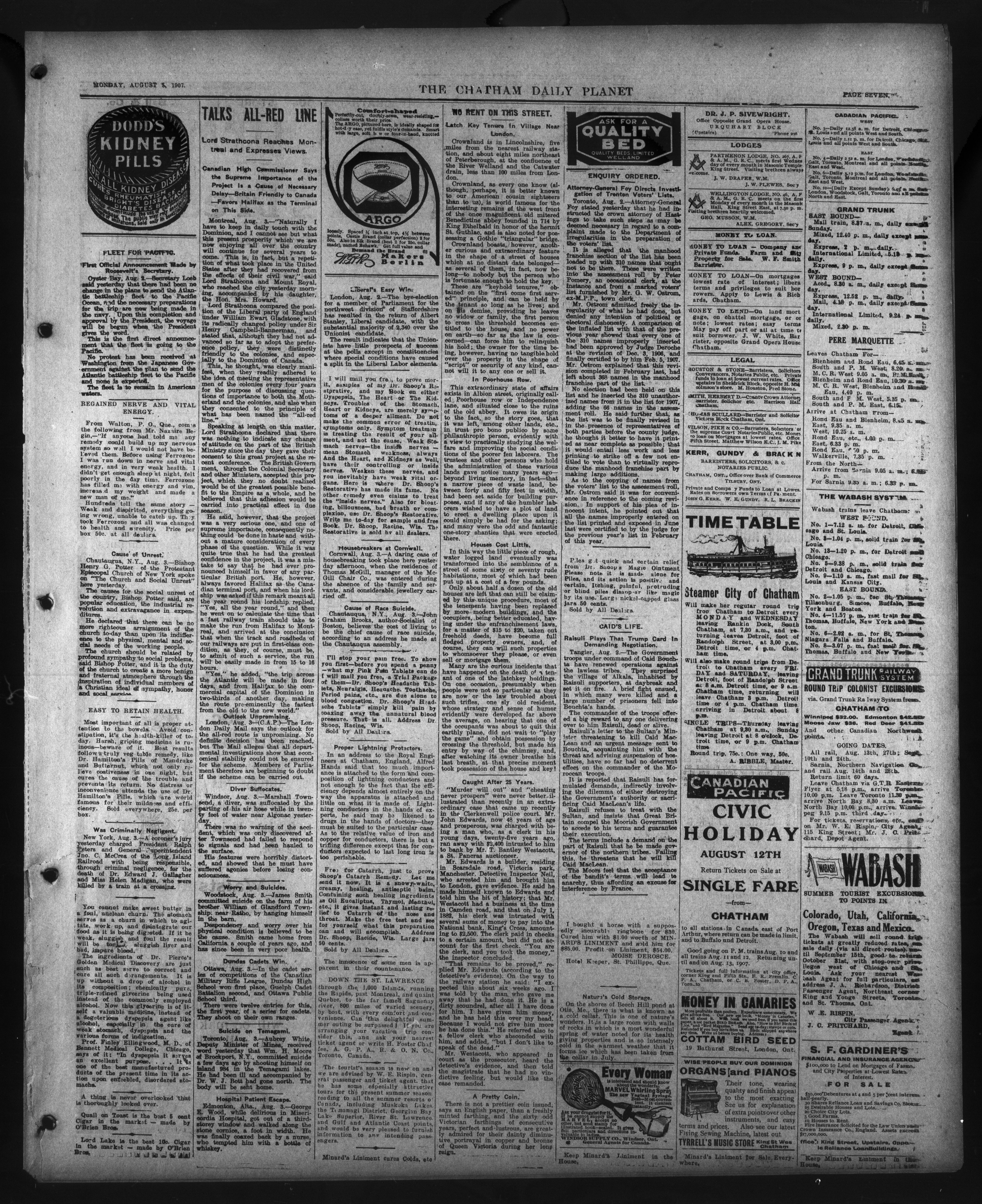 - The Chatham Daily Planet : Vol. XVI, No. 186 (August 5, 1907)