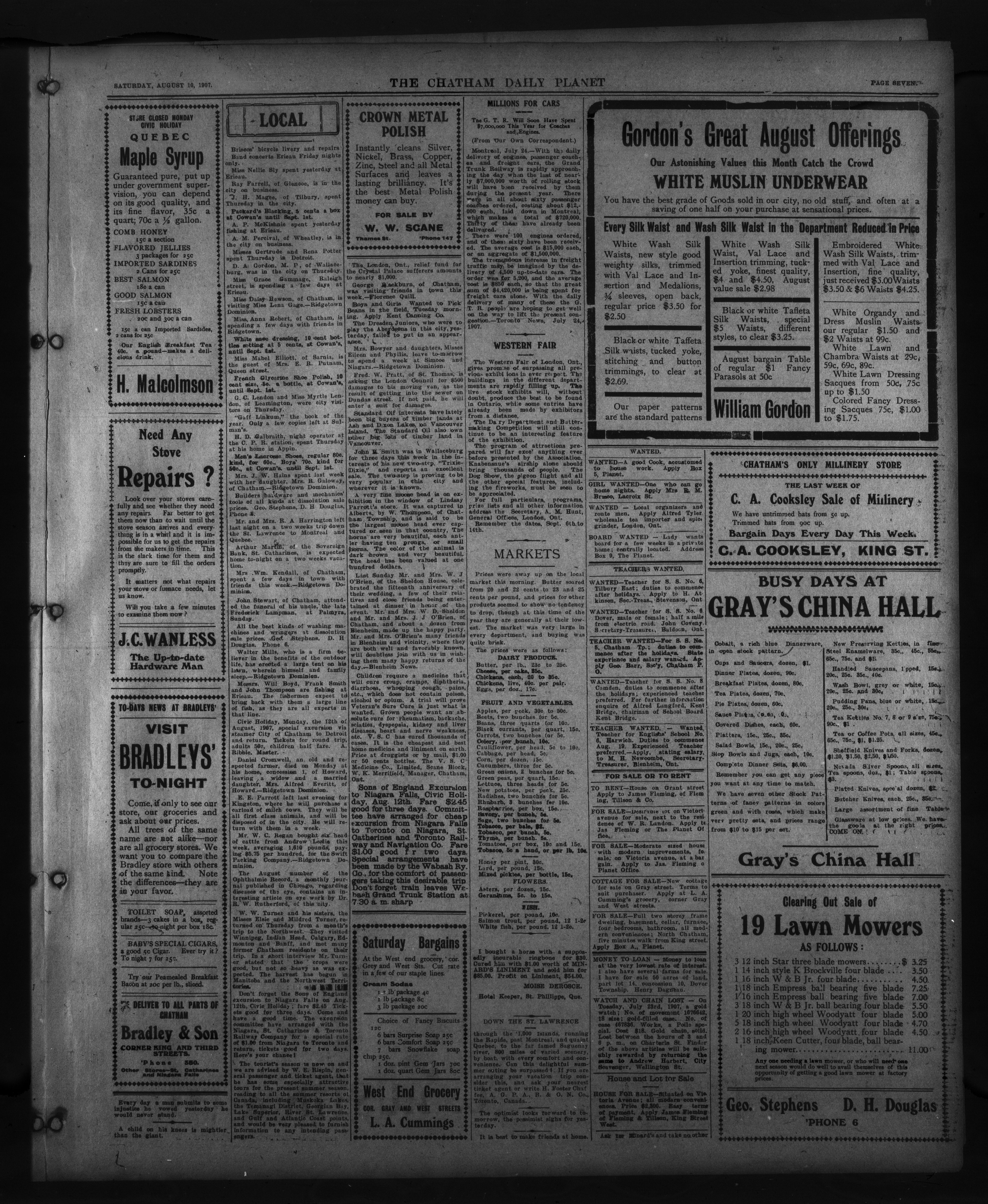 The Chatham Daily Planet. : The Chatham Daily Planet : Vol. XVI, No. 191 (August 10, 1907)