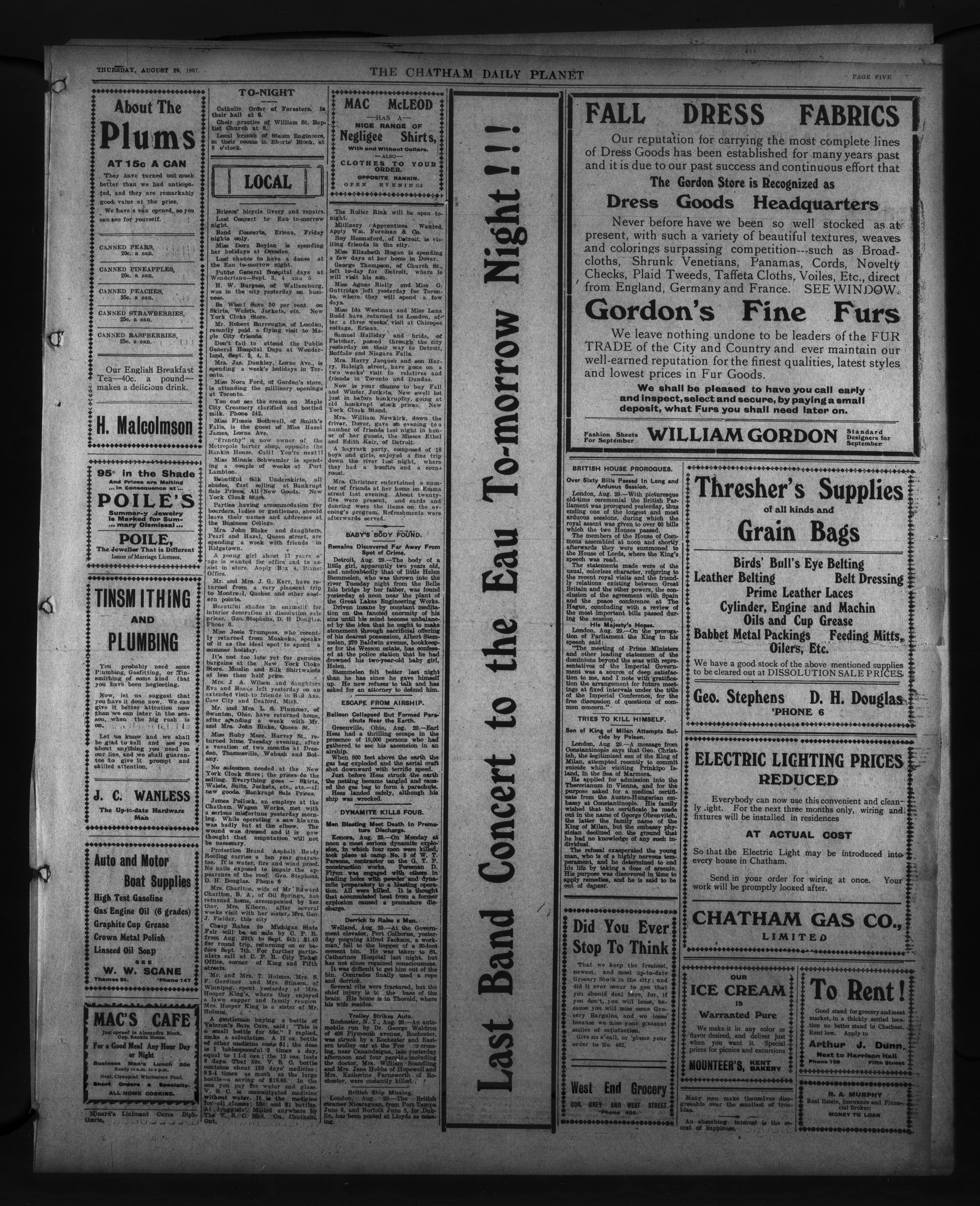 - The Chatham Daily Planet : Vol. XVI, No. 207 (August 29, 1907)