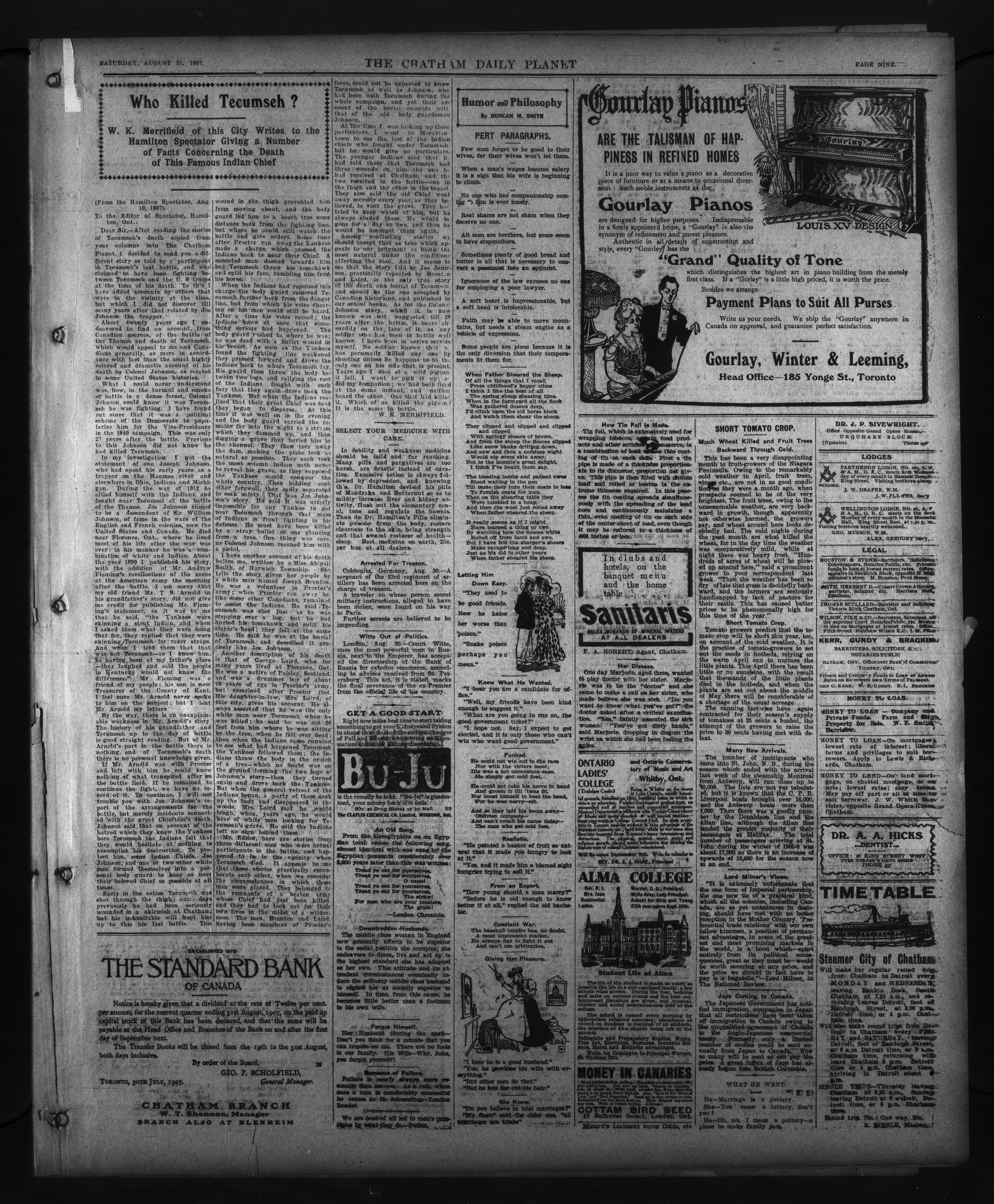 - The Chatham Daily Planet : Vol. XVI, No. 209 (August 31, 1907)