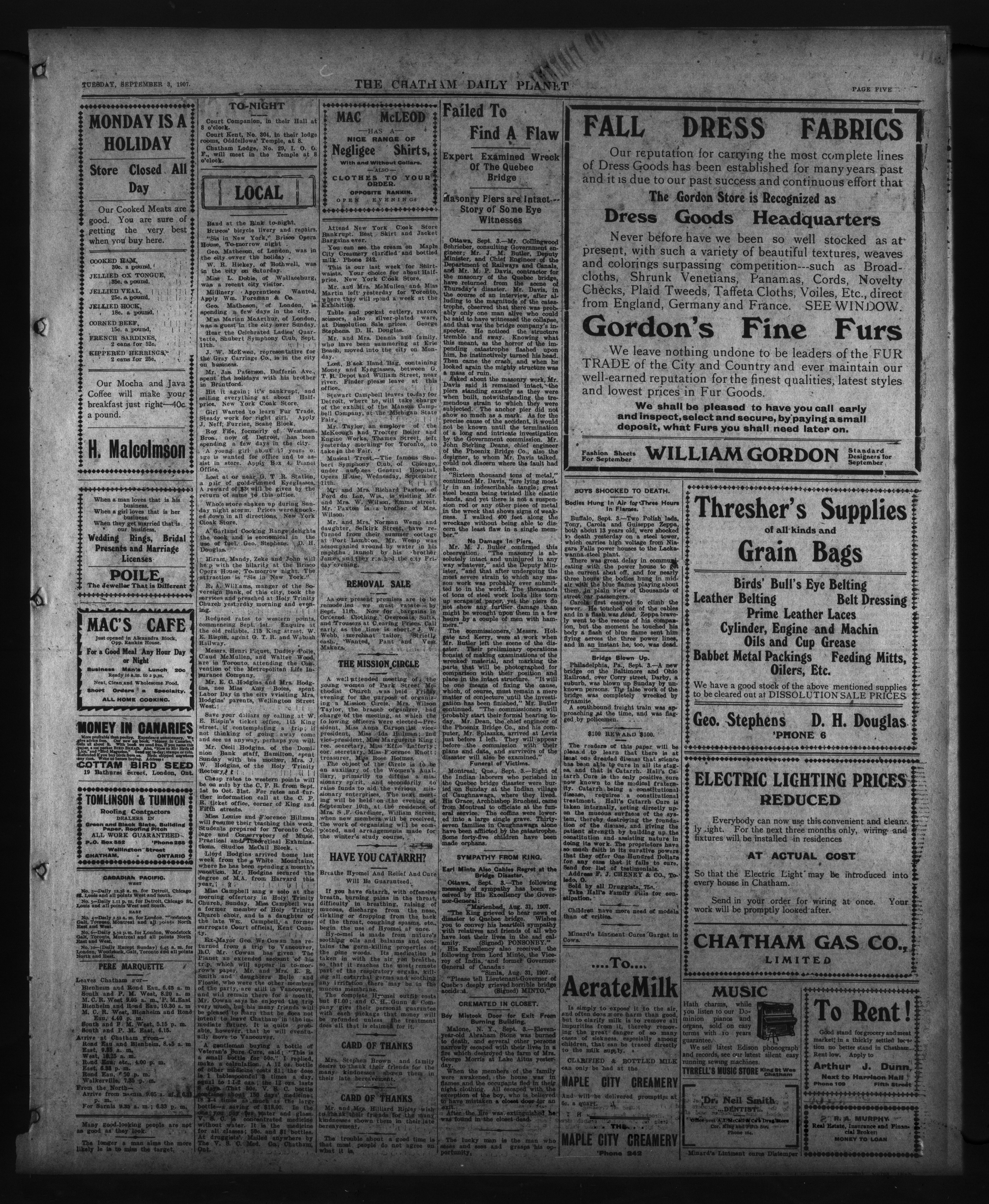 - The Chatham Daily Planet : Vol. XVI, No. 211 (September 3, 1907)