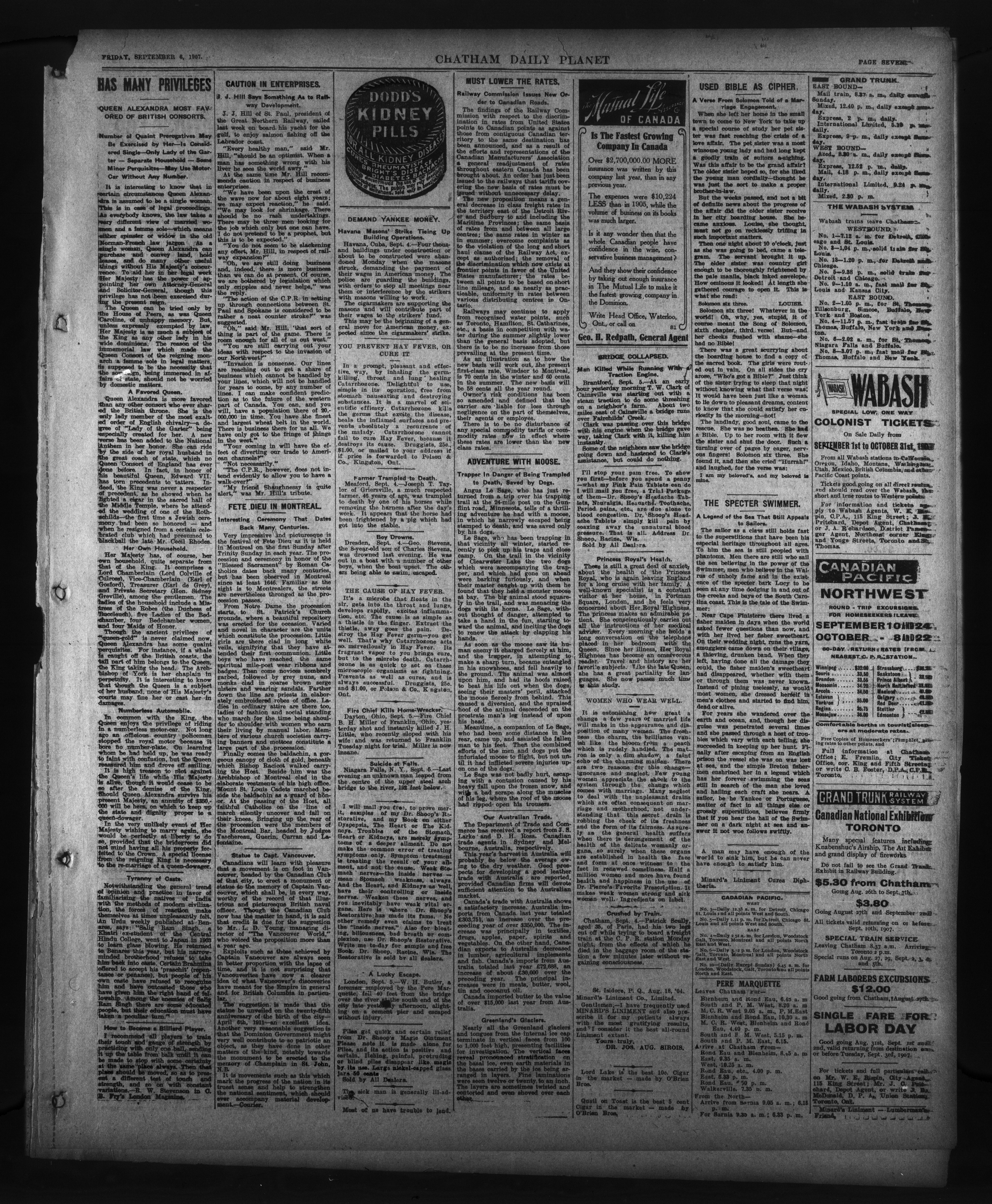 - The Chatham Daily Planet : Vol. XVI, No. 214 (September 6, 1907)