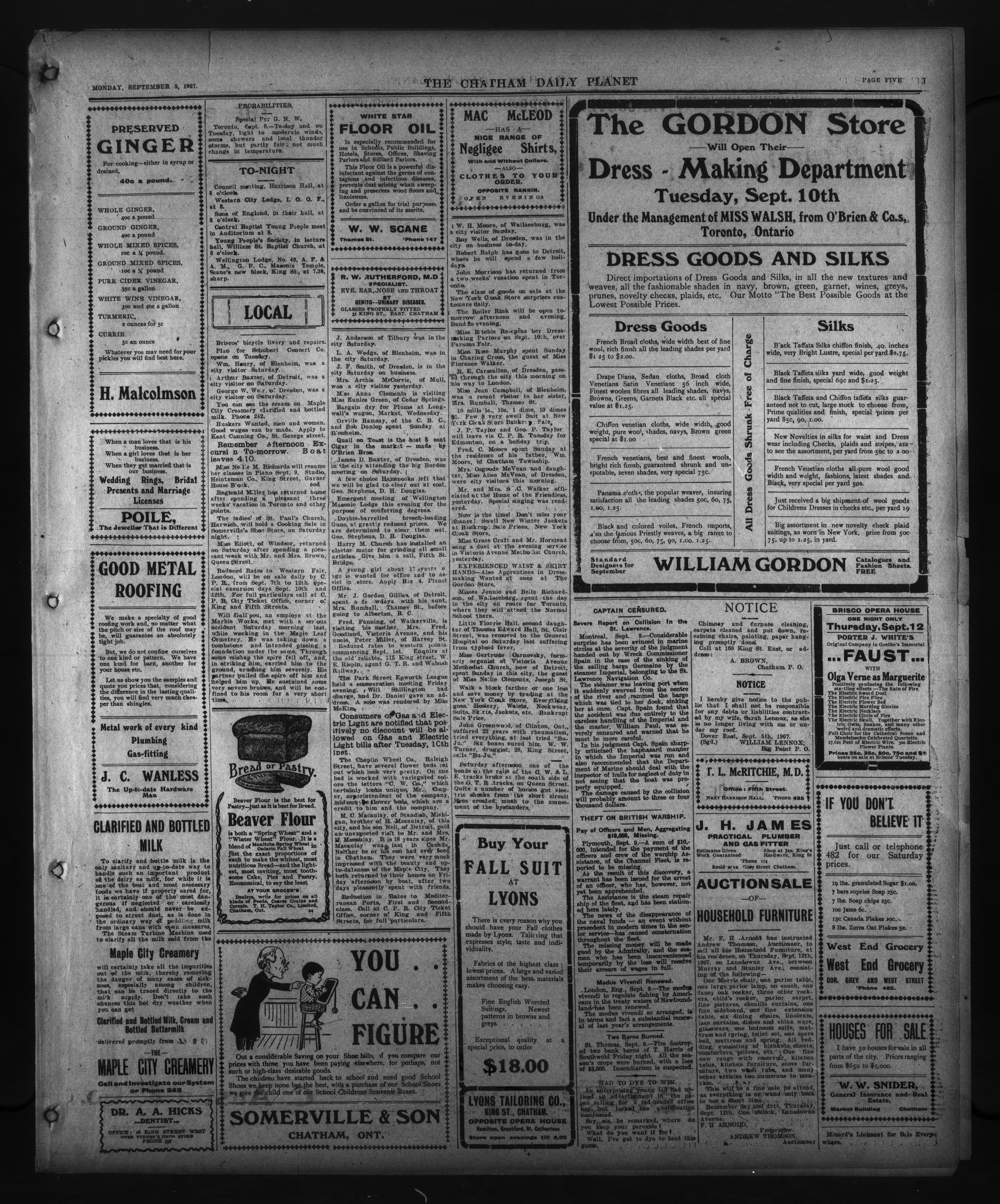 - The Chatham Daily Planet : Vol. XVI, No. 216 (September 9, 1907)